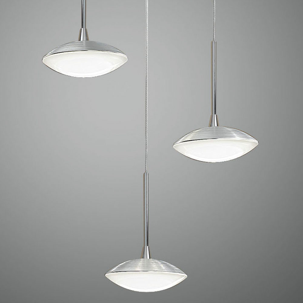 Diese Pendelleuchte aus gebürstetem Aluminium erhellt jeden Raum mit ihrem modernen Design und den LED-Lampen.