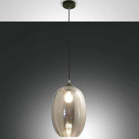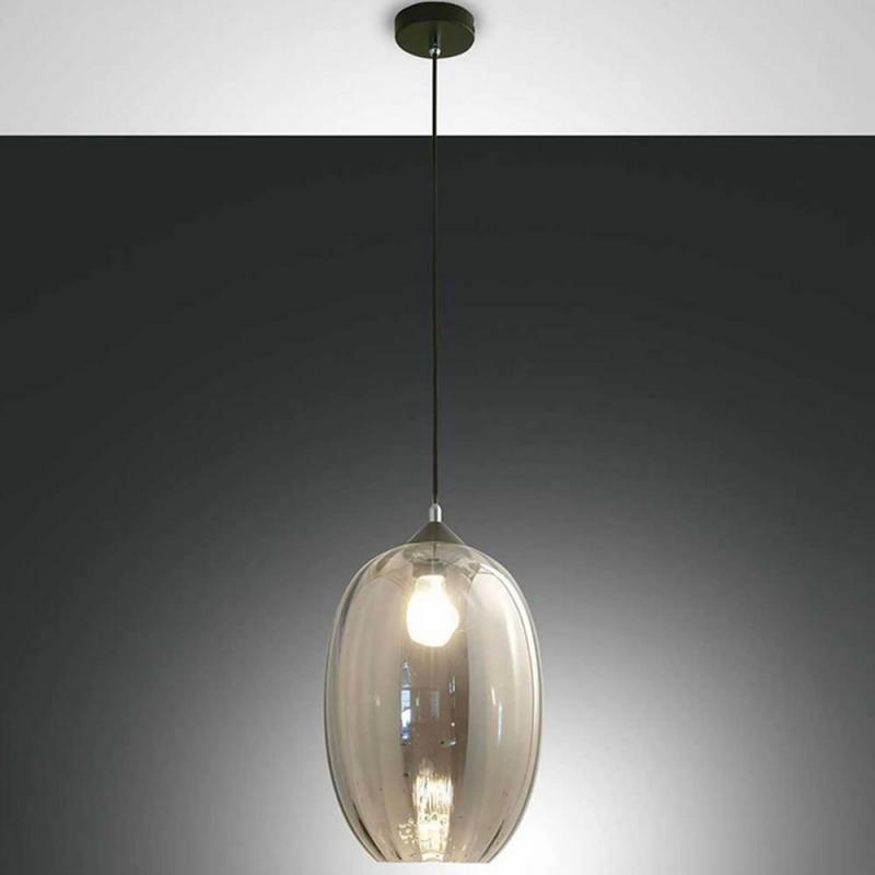 Diese Leuchte wirkt schick über einem Eßtisch oder Couchtisch und verbreitet ein gemütliches mediterranes Flair. Die Gestaltung der Hängeleuchte ist schlicht gehalten und macht diese Lampe gerade deshalb zu einem Hingucker. Das Licht wird durch die graue glänzende Glasoberfläche fein gefiltert und somit als angenehm empfunden.