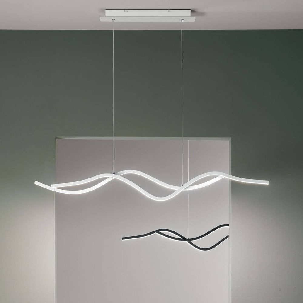 Die Sinuo-Pendelleuchte ist eine elegante, moderne Leuchte, die alle Blicke auf sich zieht.