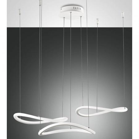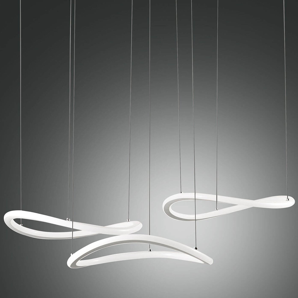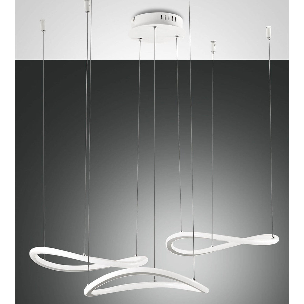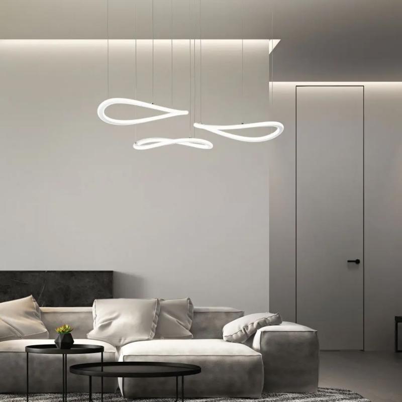 Die Tirreno ist eine Pendelleuchte mit einem modernen, minimalistischen, ringförmigen Design. Das Besondere sind die 3 Ringelemente, die gekonnt miteinander in Szene gesetzt weden und auf eine wundervolle Weise miteinander harmonieren. Sie ist die perfekte Ergänzung zu modernen Interieurs. Die Hängeleuchte besteht aus drei filigranen Drahtseilen, die in den Raum ragen und optisch von dem weißen Metallring dominiert werden, an dessen Unterseite die leuchtstarken, effizienten LEDs eingelassen sind, die warmweiß und damit wohnlich leuchten.