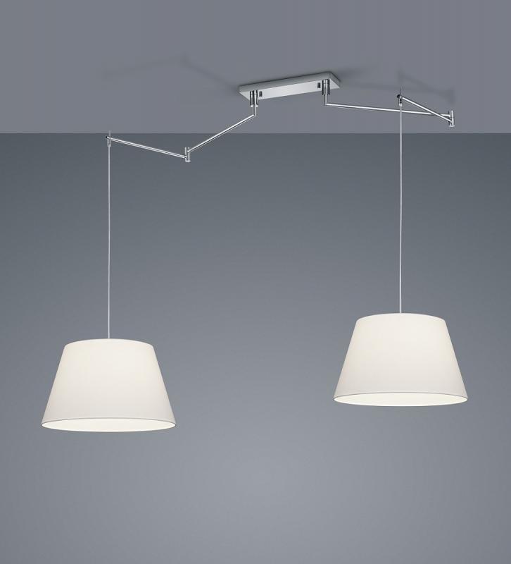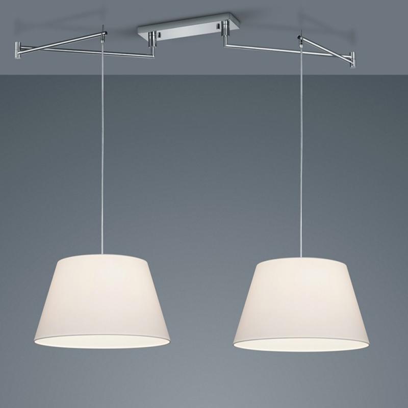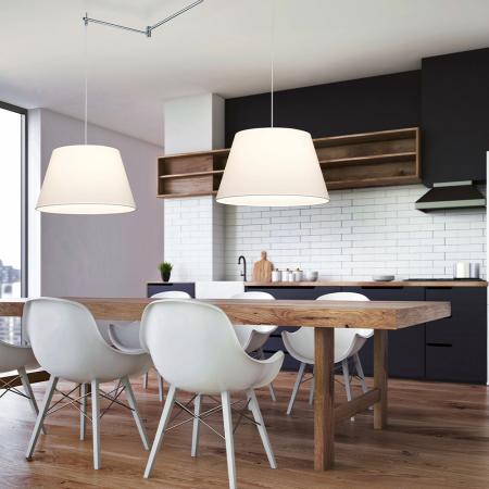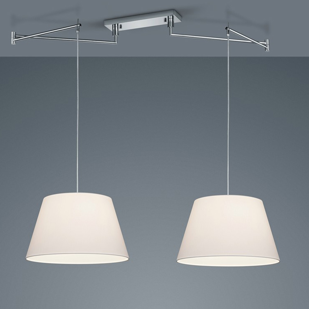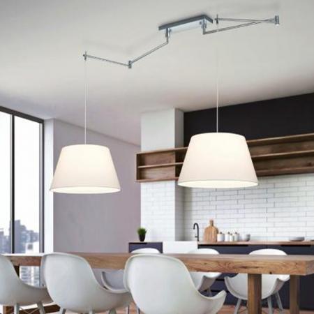 Die Hängeleuchte verfügt über zwei Stoffschirme, die mit Seilabhängungen vom beweglichen Deckenarm ragen. Stoffschirme sorgen für ein warmes und behagliches Wohlfühl-Licht, was der Textilhängeleuchte CERTA erstklassig gelingt. Wenn Sie diese Pendelleuchte über einem Ess- oder Couchtisch anbringen, dann strahlt sie pure Gemütlichkeit aus und lässt Ihr Ambiente stilvoll sowie wohnlich wirken. Auch Ihre Gäste werden von dieser besonderen Leuchte begeistert sein.