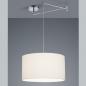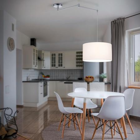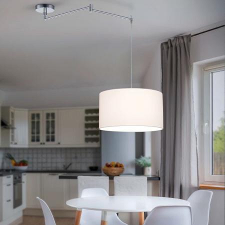 Die Hängeleuchte verfügt über einen Stoffschirm, der mit einer Seilabhängung vom beweglichen Deckenarm ragt. Stoffschirme sorgen im allgemeinen für ein warmes und behagliches Wohlfühl-Licht, was der Textilhängeleuchte CERTA erstklassig gelingt. Wenn Sie diese Pendelleuchte über einem Ess- oder Couchtisch anbringen, dann strahlt sie durch den Stoffschirm pure Gemütlichkeit aus und lässt Ihr Ambiente stilvoll sowie wohnlich wirken. Auch Ihre Gäste werden von dieser besonderen Leuchte begeistert sein.