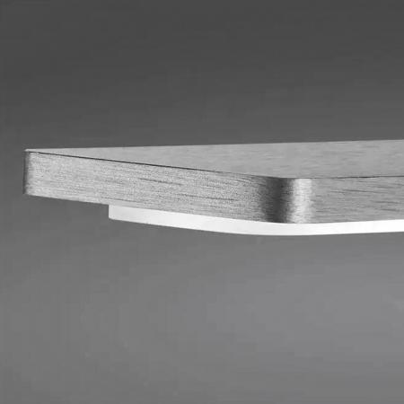 Das Außergewöhnliche an der Leuchte ist ihre Schlichtheit und Geometrie. Sie ist aus Aluminium gefertigt und mit einem matten Finish versehen. Die satinierte Abdeckung aus Acryl sorgt dafür, daß das Licht nach unten sanft gestreut wird, um die unterhalb gelegene Tischfläche gleichmäßig und blendfrei zu erhellen.