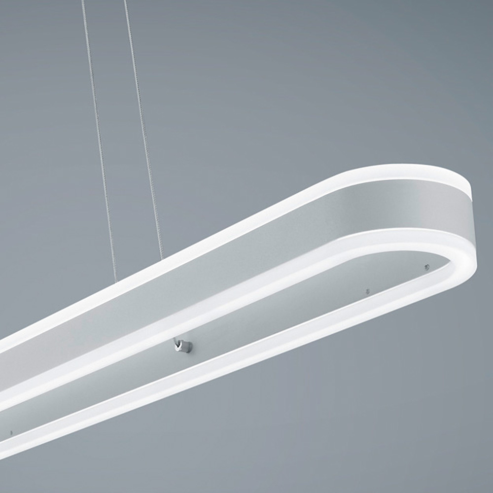 Sie ist durch den satinierten Acryldiddusor mit einem matten Finish versehen. Die satinierte Abdeckung aus Acryl sorgt dafür, daß das Licht fein gestreut wird, um die Umgebung und eine unterhalb gelegene Tischfläche gleichmäßig und blendfrei zu erhellen.