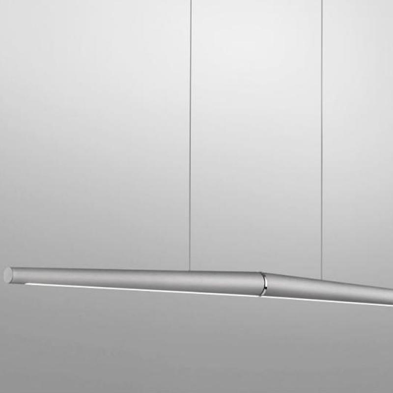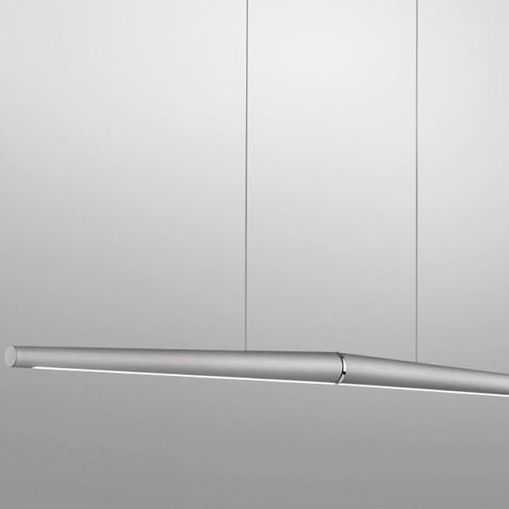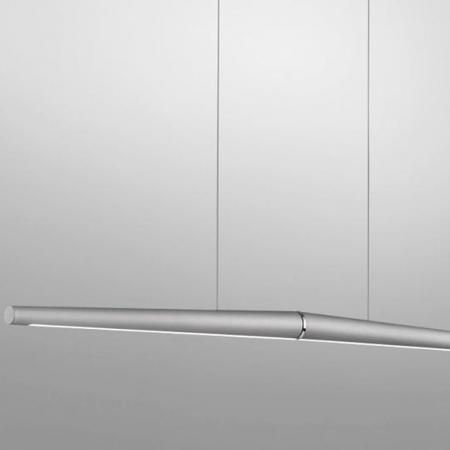 Das Charakteristische an der Leuchte ist ihre Schlichtheit und die Anlehnung an den Flügelschlag von Möwen. Sie ist aus Aluminium gefertigt und mit einem matten Finish versehen. Die satinierte Abdeckung aus Acryl sorgt dafür, daß das Licht nach unten sanft gestreut wird, um die unterhalb gelegene Tischfläche gleichmäßig und blendfrei zu erhellen.