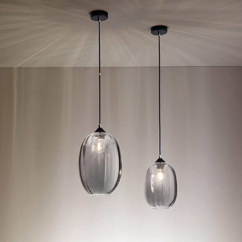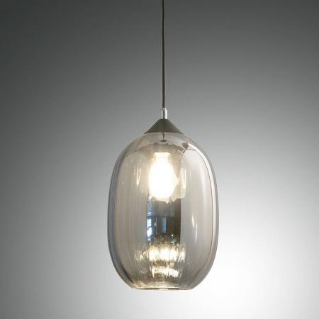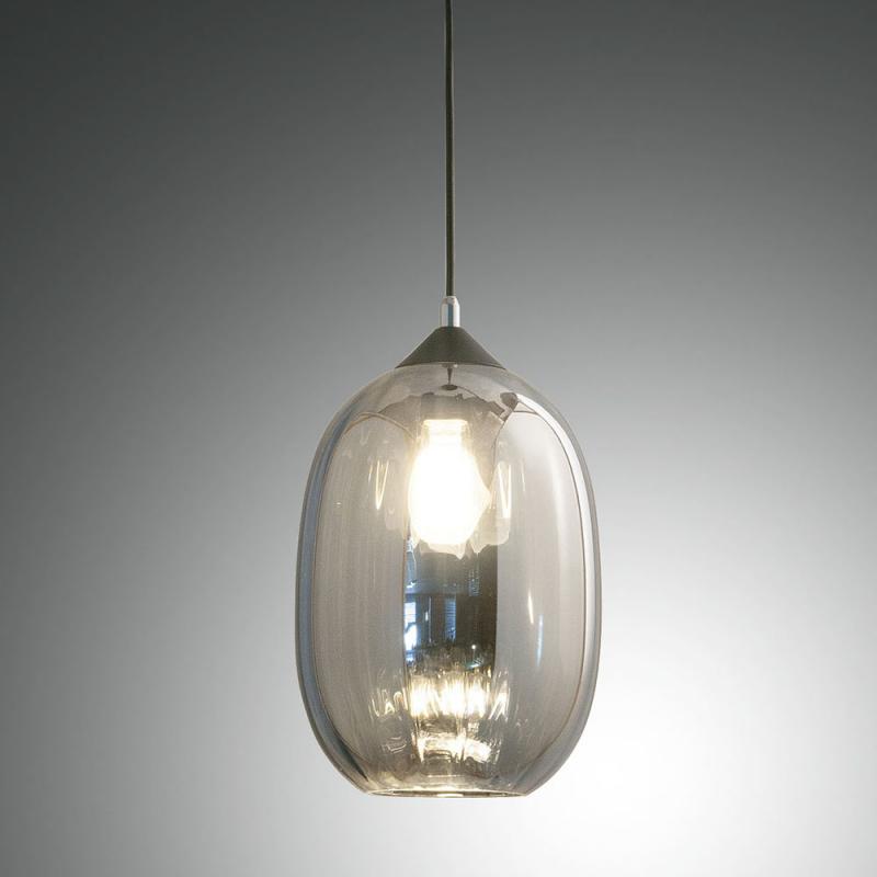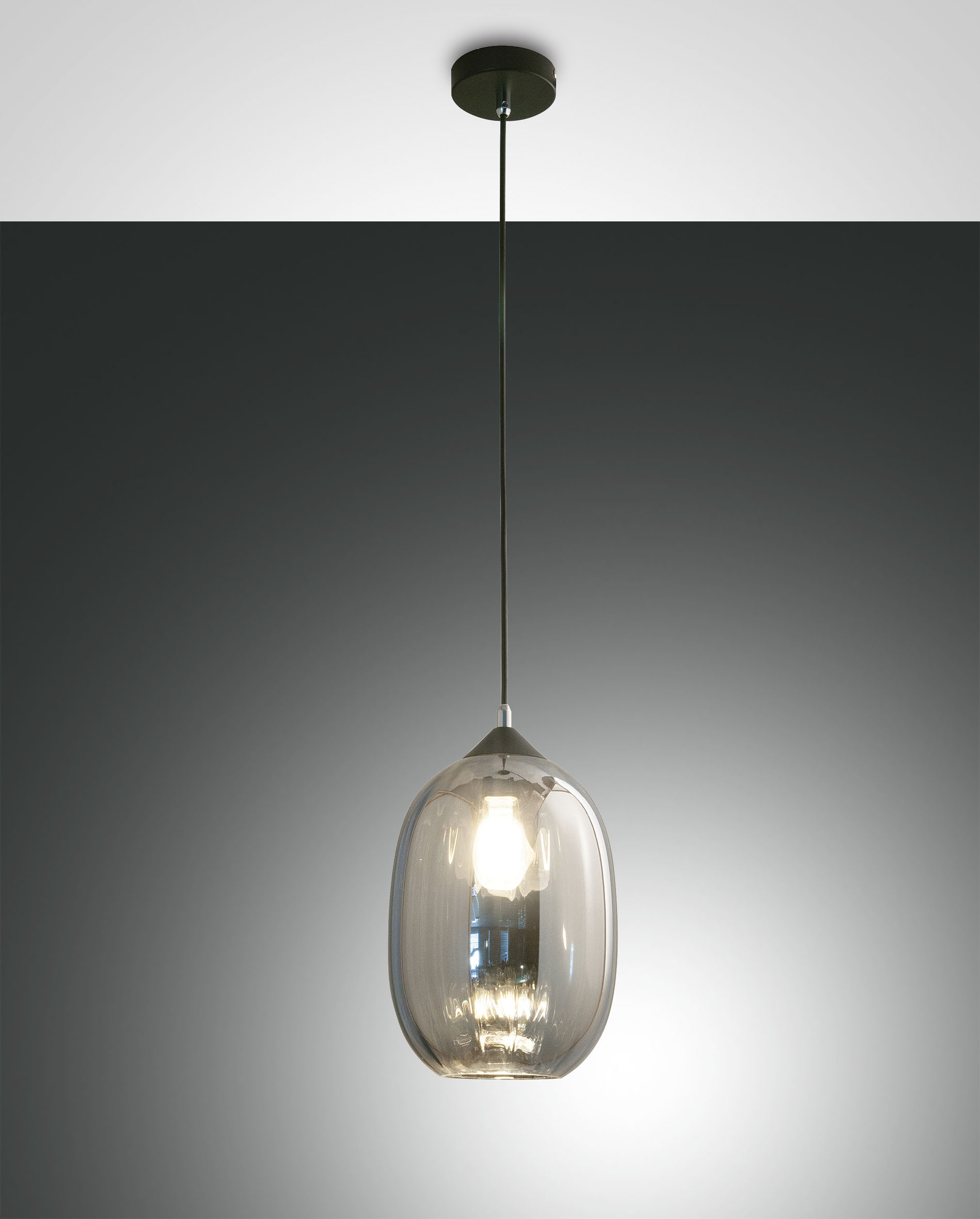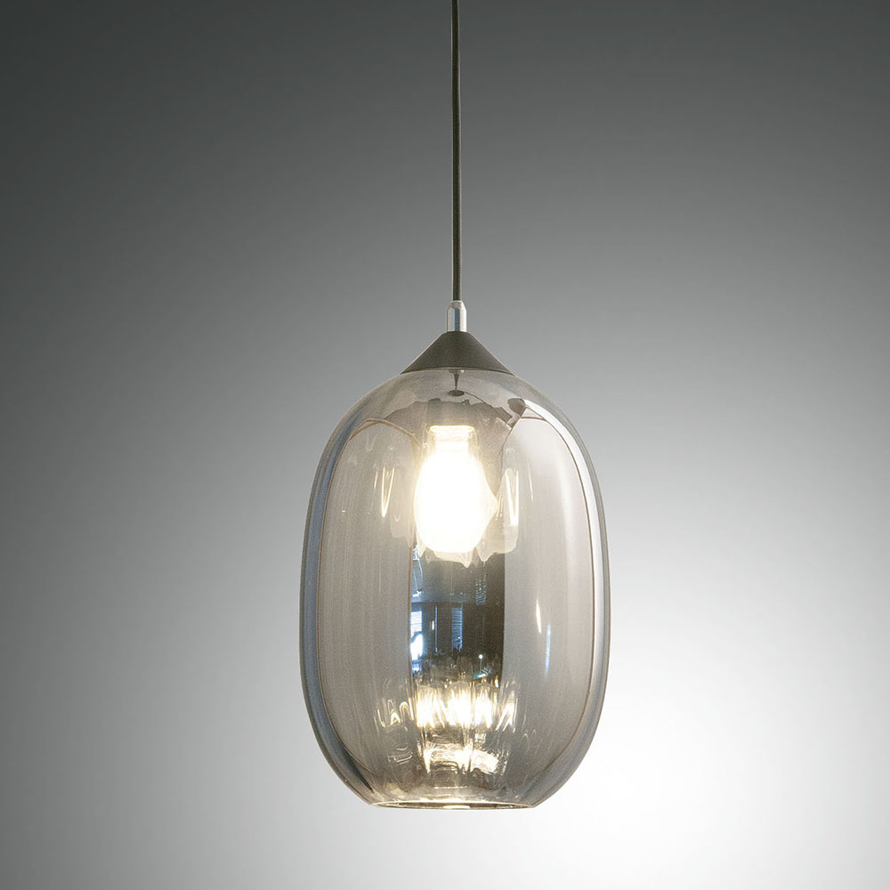 Pendelleuchte 1-flammig - Rauchgraues geblasenes Glas
