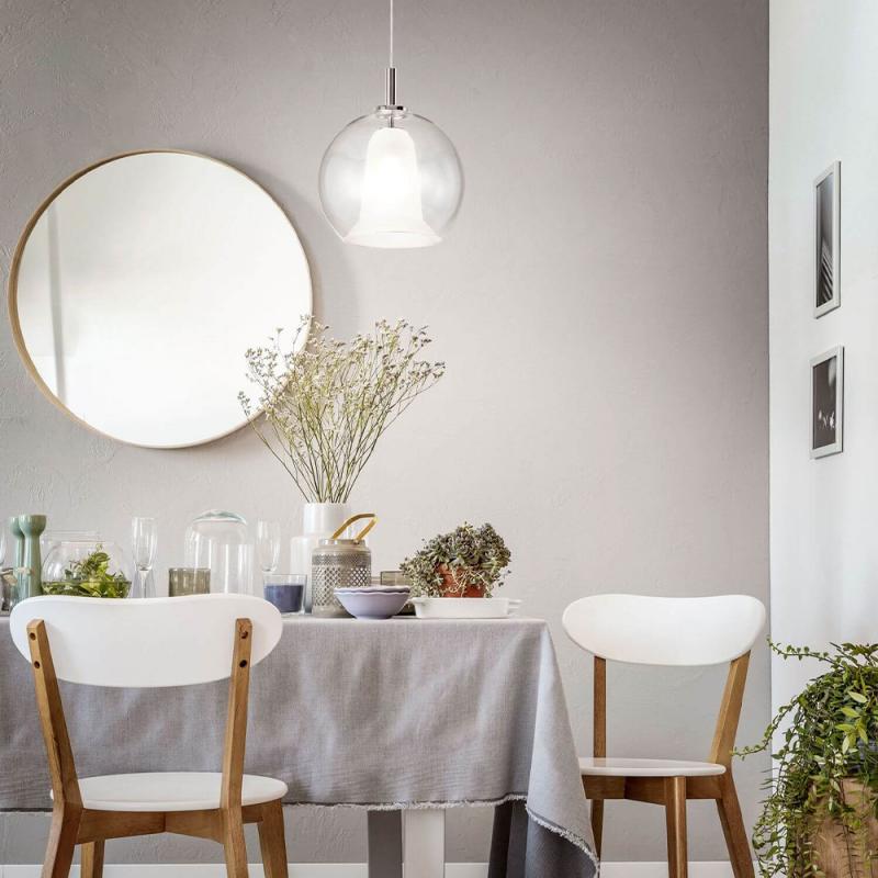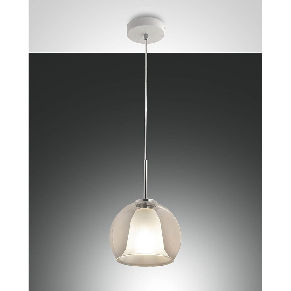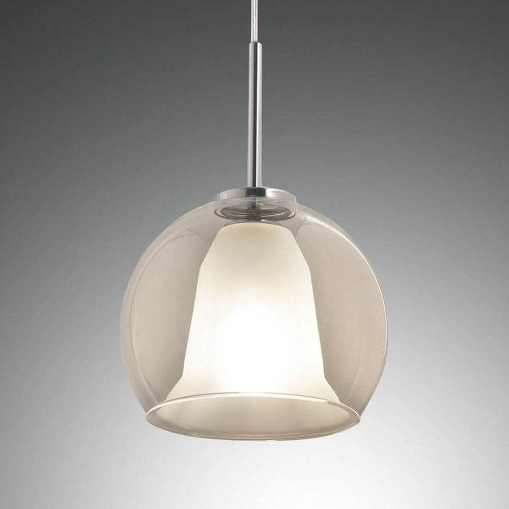 Die Bretagna-Pendelleuchte ist eine stilvolle Glas-Pendelleuchte mit einem Innenschirm, der mit dem äußeren Schirm zu einer Einheit verschmolzen zu sein scheint. Die Hängeleuchte ist mit einer E27-Fassung ausgestattet, so dass sie mit einer Vielzahl von E27-Lampen für eine individuelle Beleuchtung betrieben werden kann.