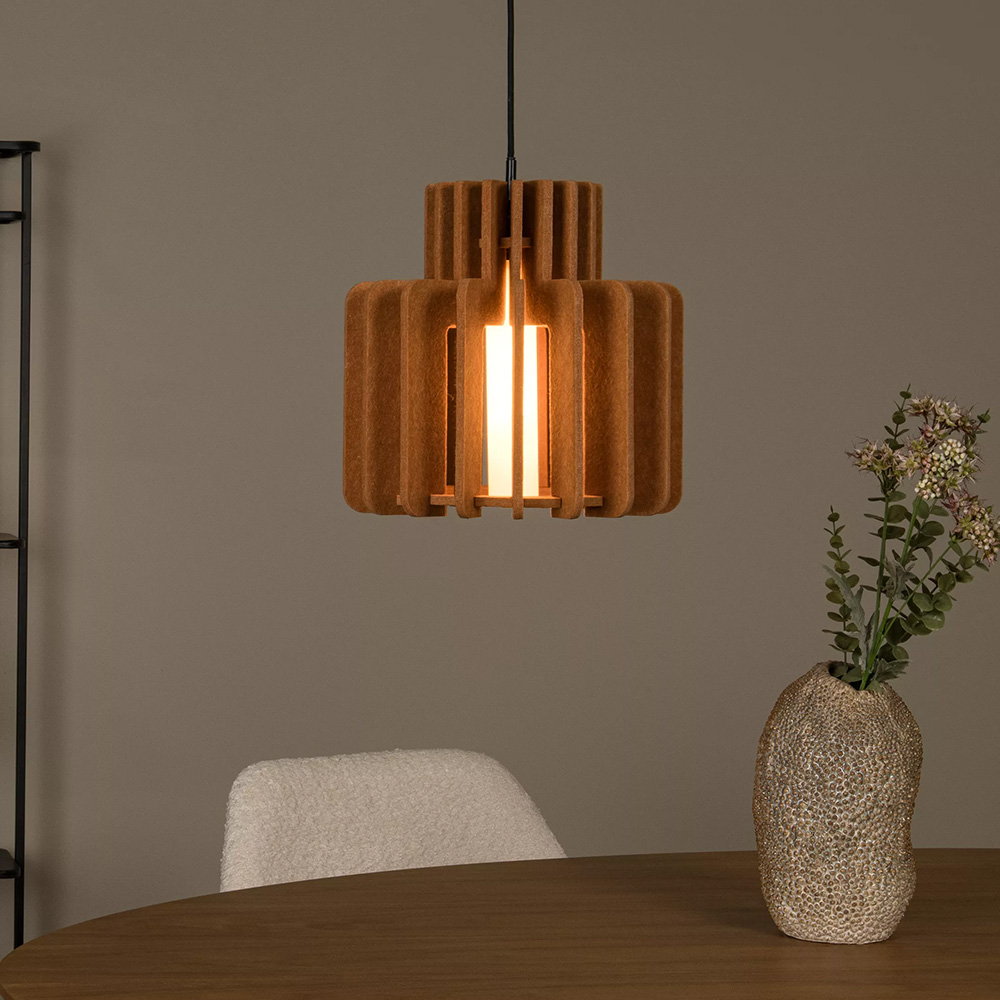 Die Lucide ROLLO Pendelleuchte in Terrakotta verbindet modernes Japandi Design mit natürlichen Materialien. Der Lampenschirm aus hochwertigem Filz sorgt für eine warme und wohnliche Optik und verbessert zusätzlich die Raumakustik. Das integrierte Milchglas erzeugt ein angenehm weiches, blendfreies Licht.