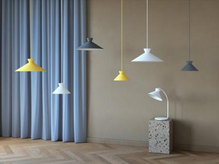Dial ist eine moderne und zeitgemäße Produktfamilie, die durch die unverwechselbaren Beleuchtungsdesigns aus den 50er-Jahren inspiriert wurde. Der Stil ist skandinavisch und schnörkellos, wobei die offene und geometrische Form viel Licht durchscheinen lässt. Der offene Schirm erzeugt bei eingeschaltetem Licht einen dekorativen Uplight-Effekt.