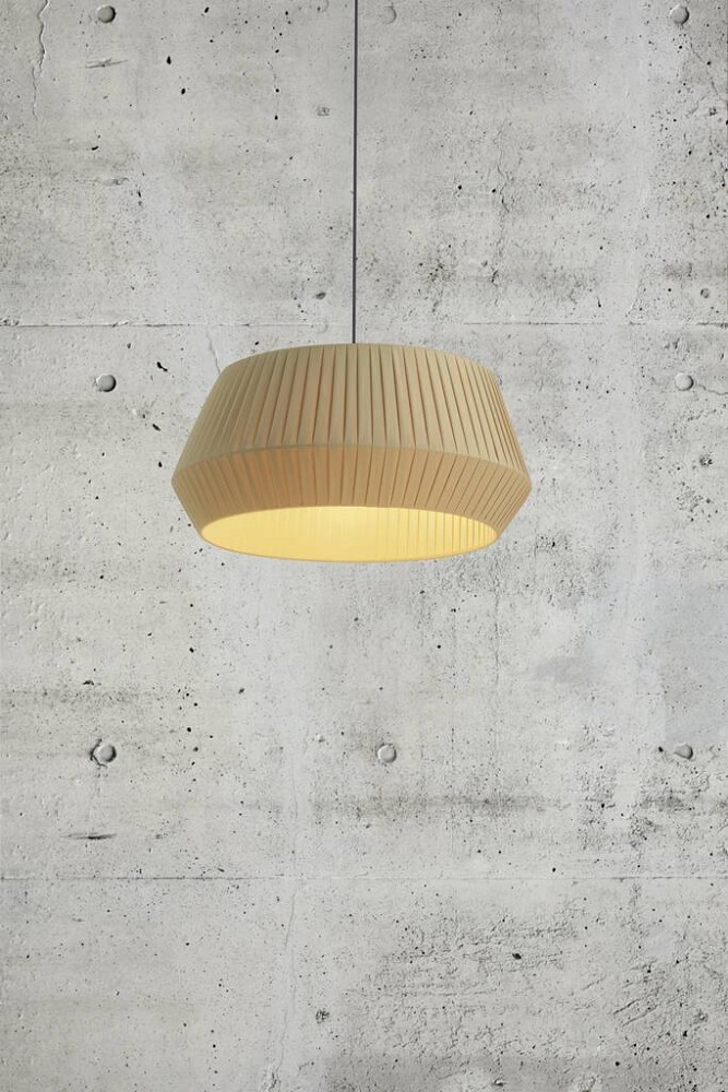 Der runde Schirm der Dicte-Serie ist aus weichem, handgeknüpftem Stoff gefertigt, der jedem Raum eine gemütliche und heimelige Atmosphäre verleiht. Der plissierte Baumwollschirm sorgt für ein weiches und diffuses Licht, das perfekt ist, um eine Ecke oder Ihren Esstisch zu beleuchten.