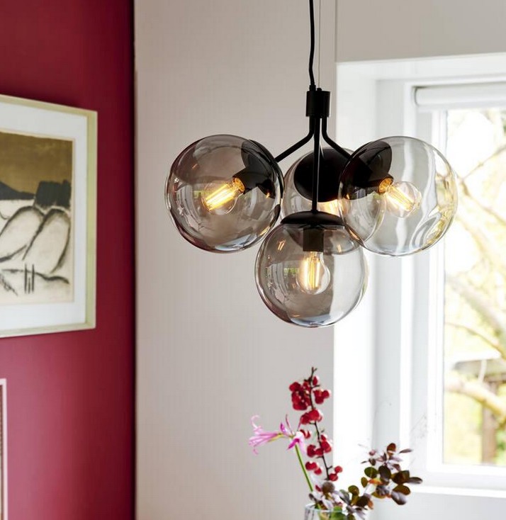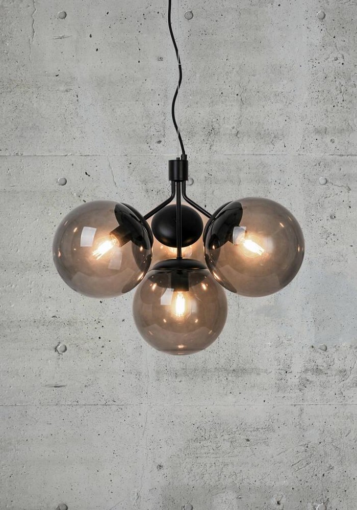 Ivona ist eine Neuinterpretation des klassischen Kronleuchters, der die traditionelle Wahrnehmung mit einem organischeren und aktuelleren Look herausfordert. Ivona strahlt ein schönes Licht aus mehreren schönen Glaskugeln für einen modernen und extravaganten Stil aus. Schwarzer Stahl und Rauchglas sorgen für einen coolen, industriellen Look. Fügen Sie eine dekorative Glühbirne hinzu, um Ihren eigenen Designausdruck zu schaffen.