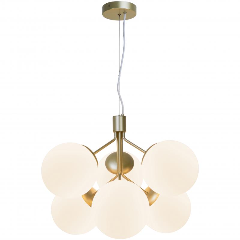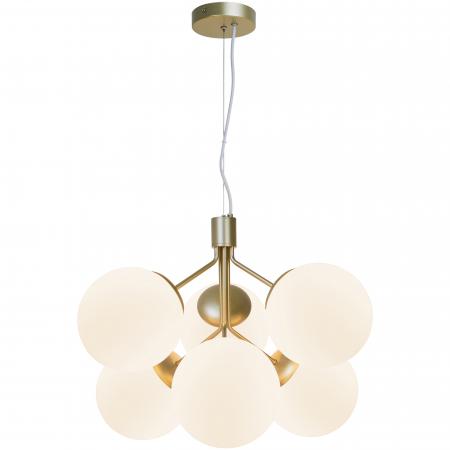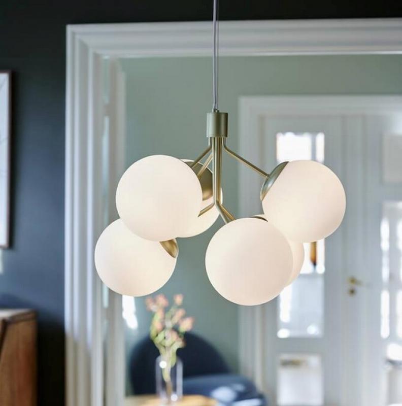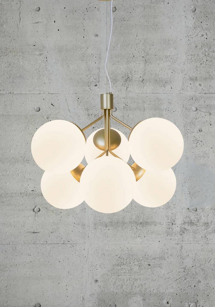 Die Kombination aus Messing und Opalglas schafft einen glamourösen und eleganten Designausdruck. Ivona ist eine Neuinterpretation des klassischen Kronleuchters, der die traditionelle Wahrnehmung mit einem organischeren und aktuelleren Look herausfordert. Ivona strahlt ein schönes Licht aus mehreren schönen Glaskugeln für einen modernen und extravaganten Stil aus.