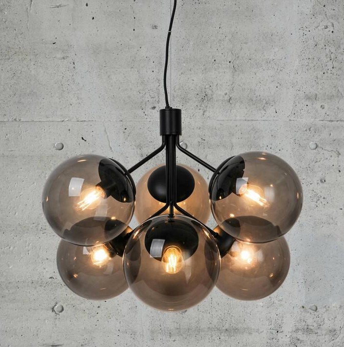 Ivona ist eine Neuinterpretation des klassischen Kronleuchters, der die traditionelle Wahrnehmung mit einem organischeren und aktuelleren Look herausfordert. Ivona strahlt ein schönes Licht aus mehreren schönen Glaskugeln für einen modernen und extravaganten Stil aus. Schwarzer Stahl und Rauchglas sorgen für einen coolen, industriellen Look. Fügen Sie eine dekorative Glühbirne hinzu, um Ihren eigenen Designausdruck zu schaffen.