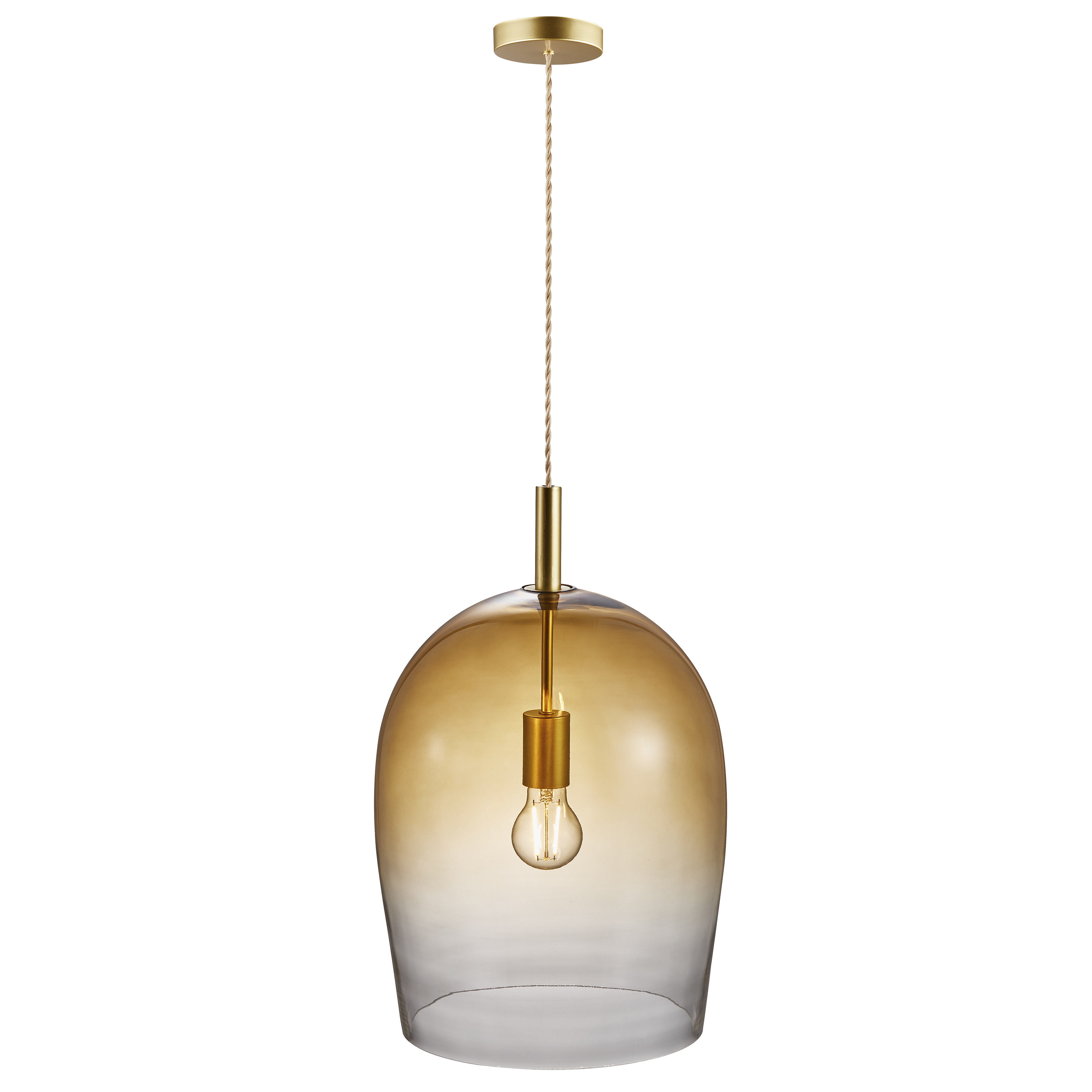 Die Uma-Serie verleiht der klassischen Pendelleuchte einen modernen und dekorativen Touch. Der mundgeblasene Glasschirm hat eine elegante, ovale Form, die das Licht auf wunderbare Weise einrahmt. Der bernstein farbene Glasschirm sorgt für ein weiches, diffuses Licht.