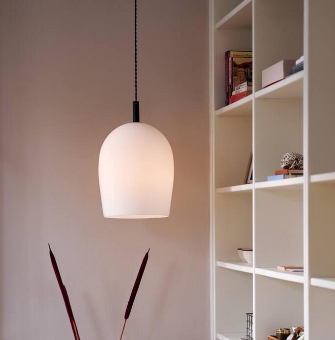 Die Uma-Serie verleiht der klassischen Pendelleuchte einen modernen und dekorativen Touch. Der mundgeblasene Glasschirm hat eine elegante, ovale Form, die das Licht auf wunderbare Weise einrahmt. Der weiße Glasschirm sorgt für ein weiches, diffuses Licht.