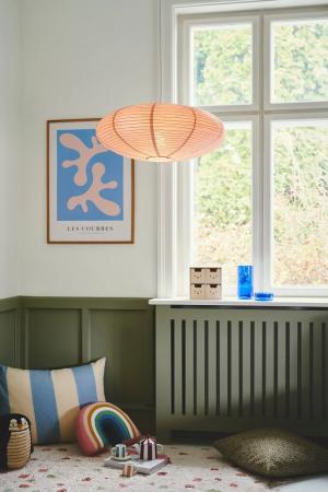 Villo ist eine Neuinterpretation der zeitlosen und klassischen Reispapierleuchte. Sie wirkt sehr leicht und luftig und schafft mit ihrem weichen Licht überall ein gemütliches Ambiente.