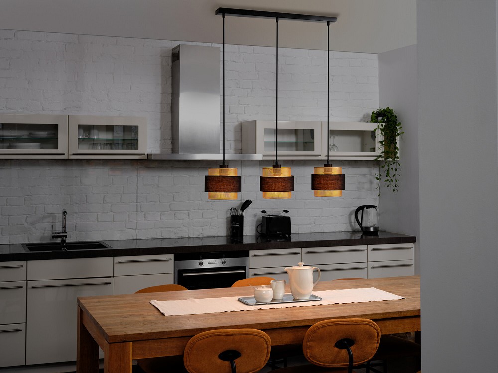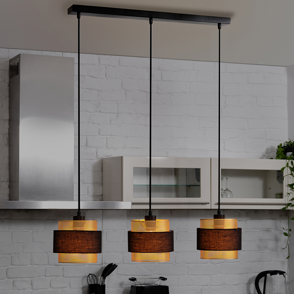 Osram Decor 3-flammige Hornet Pendelleuchte in Schwarz / Gold mit E27 Fassungen - gelungene Symbiose aus Stahl und Polyester-Baumwolle