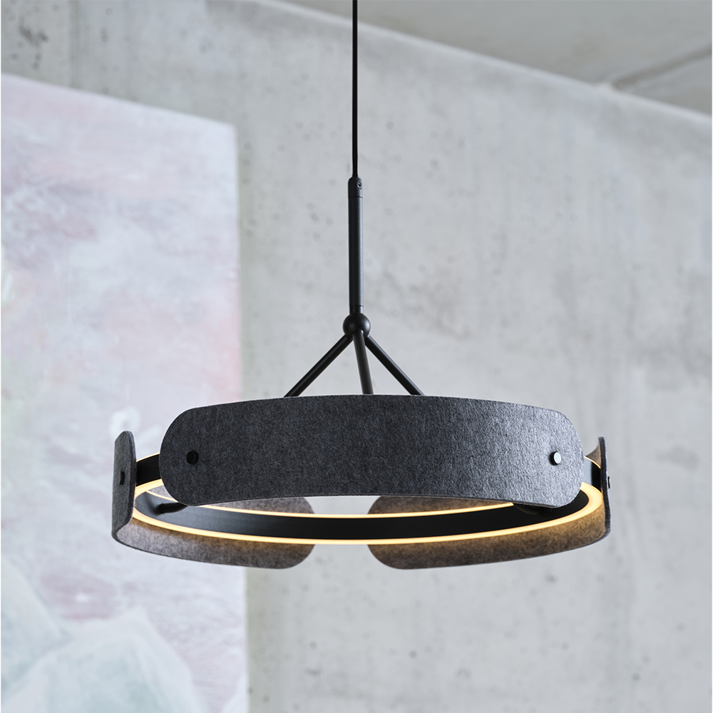 Preview: Osram Pendelleuchte Decor Curve Felt in Dunkelgrau mit warmweißem Licht Ø 43 cm - Auffällige Leuchte aus Filz