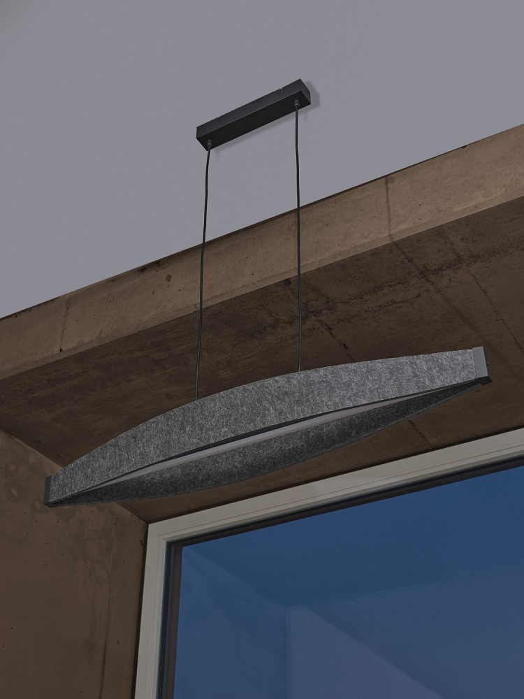 Auffälliges Design: Der Filzschirm sorgt für eine markante und dennoch wohnliche Optik.