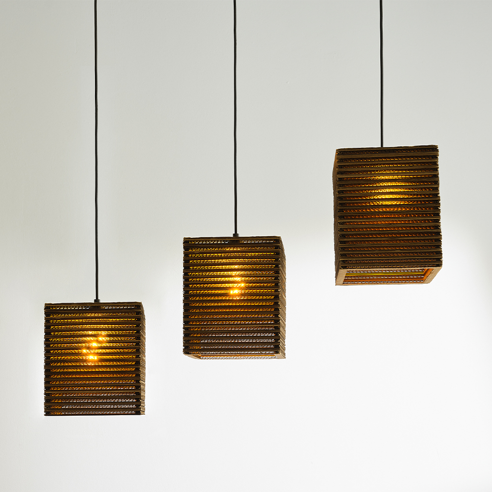 Nachhaltige Pendelleuchte aus Wellpappe – warmes, natürliches Licht für Ihr Zuhause