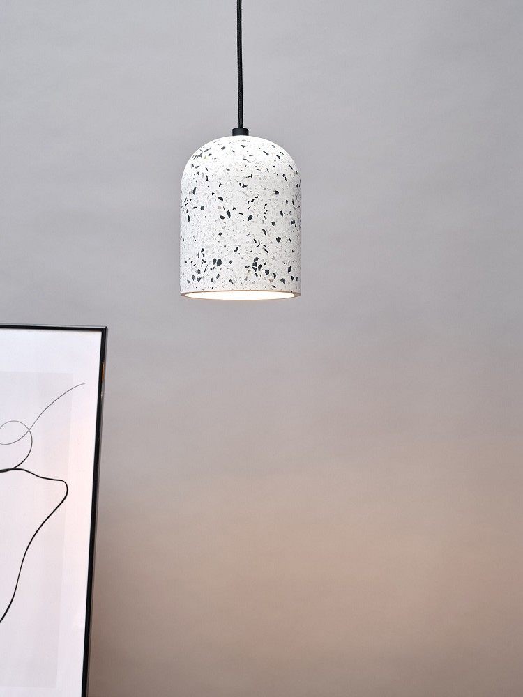 Pendelleuchte Decor Pill aus Terrazzo Stein mit E27 Fassung in Weiß gesprenkelt Ø 15 cm