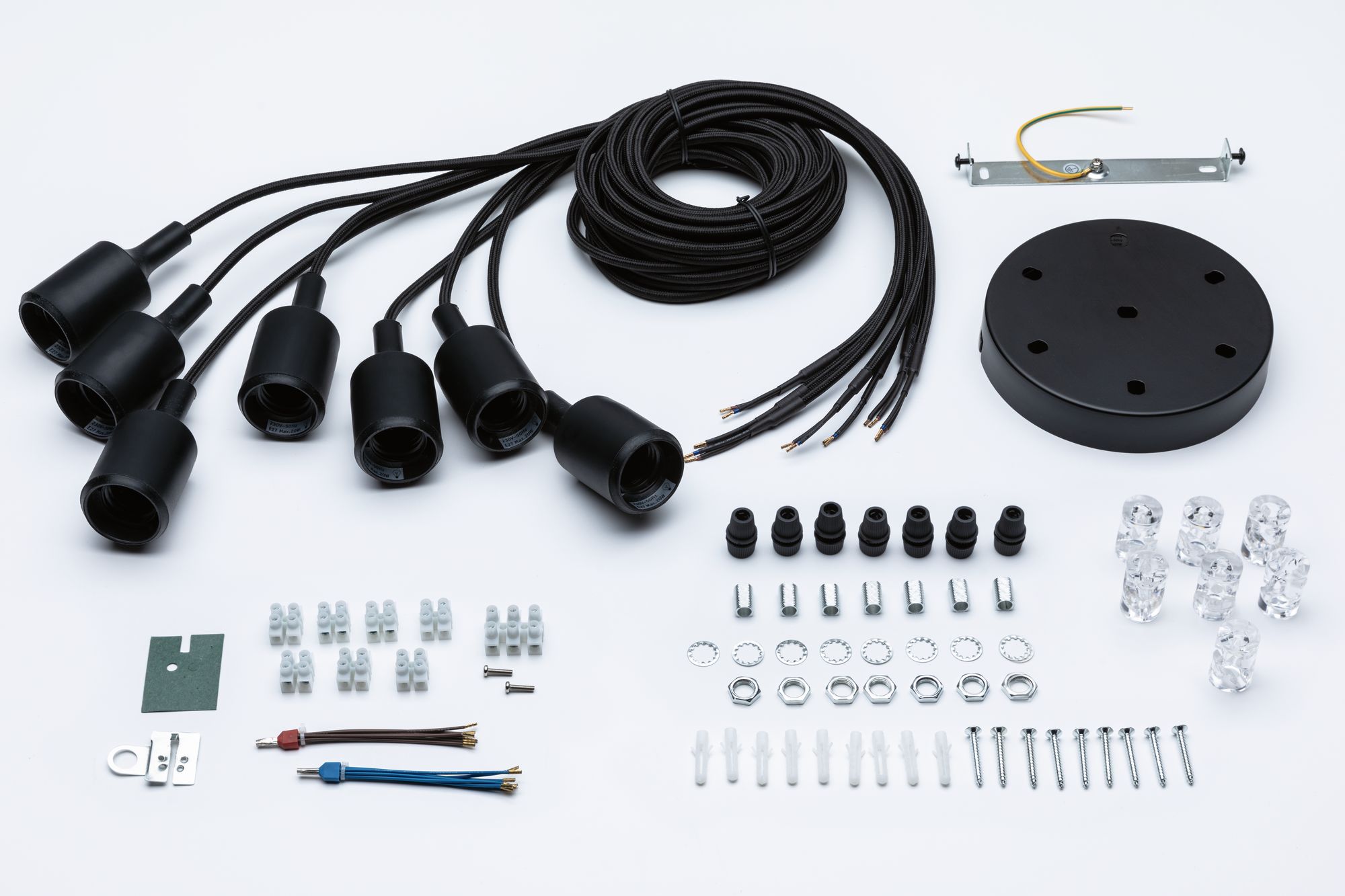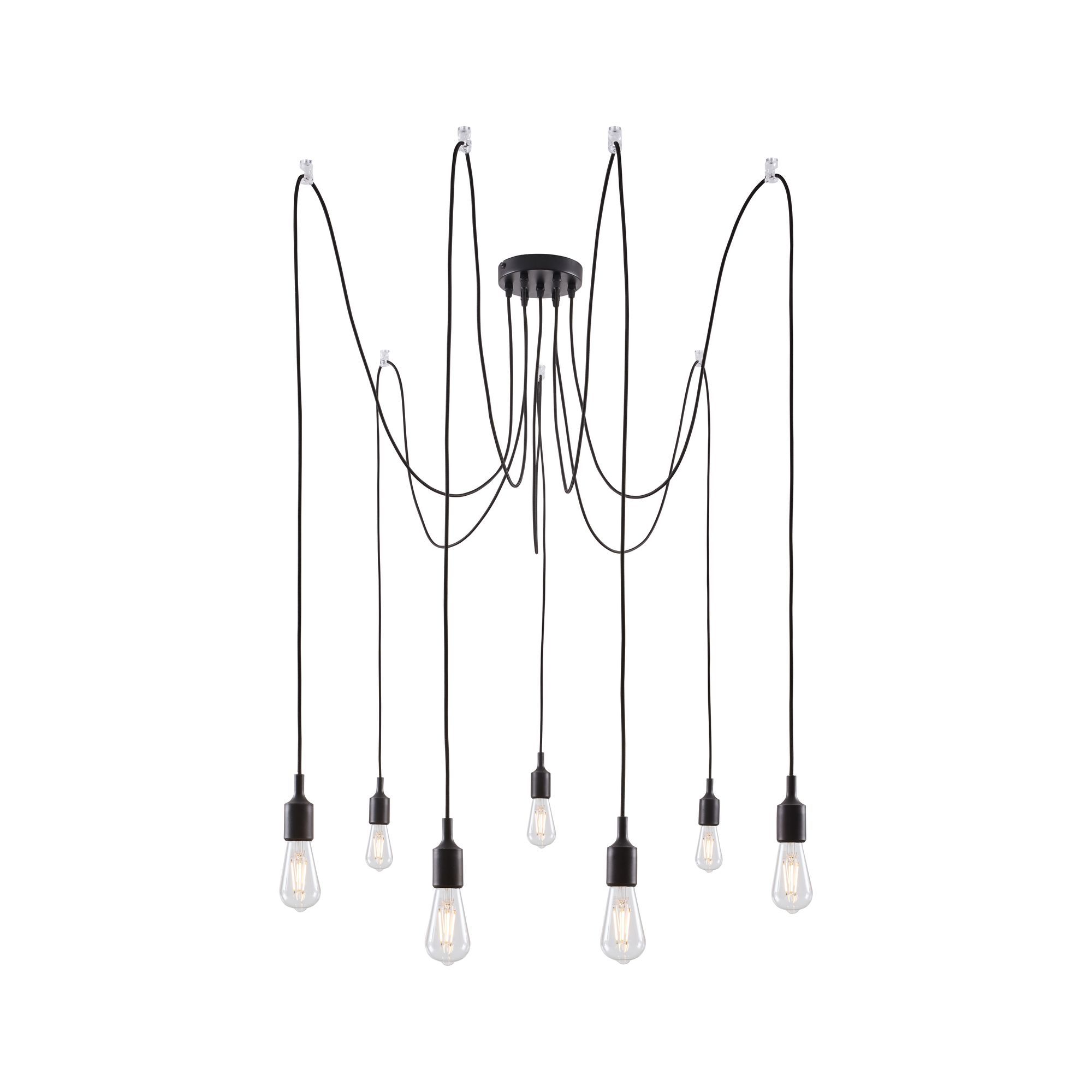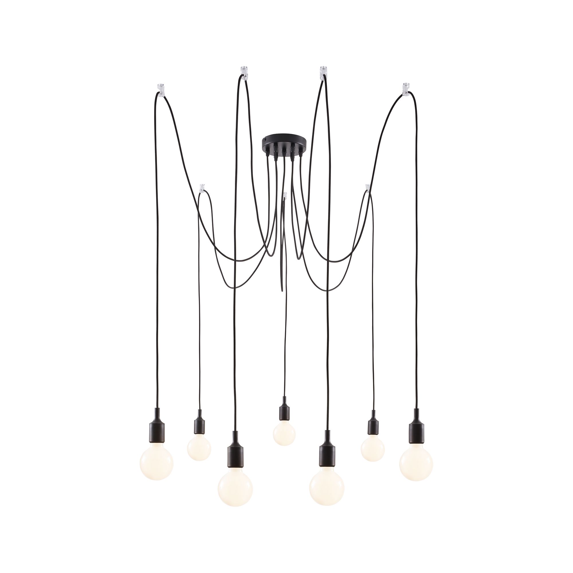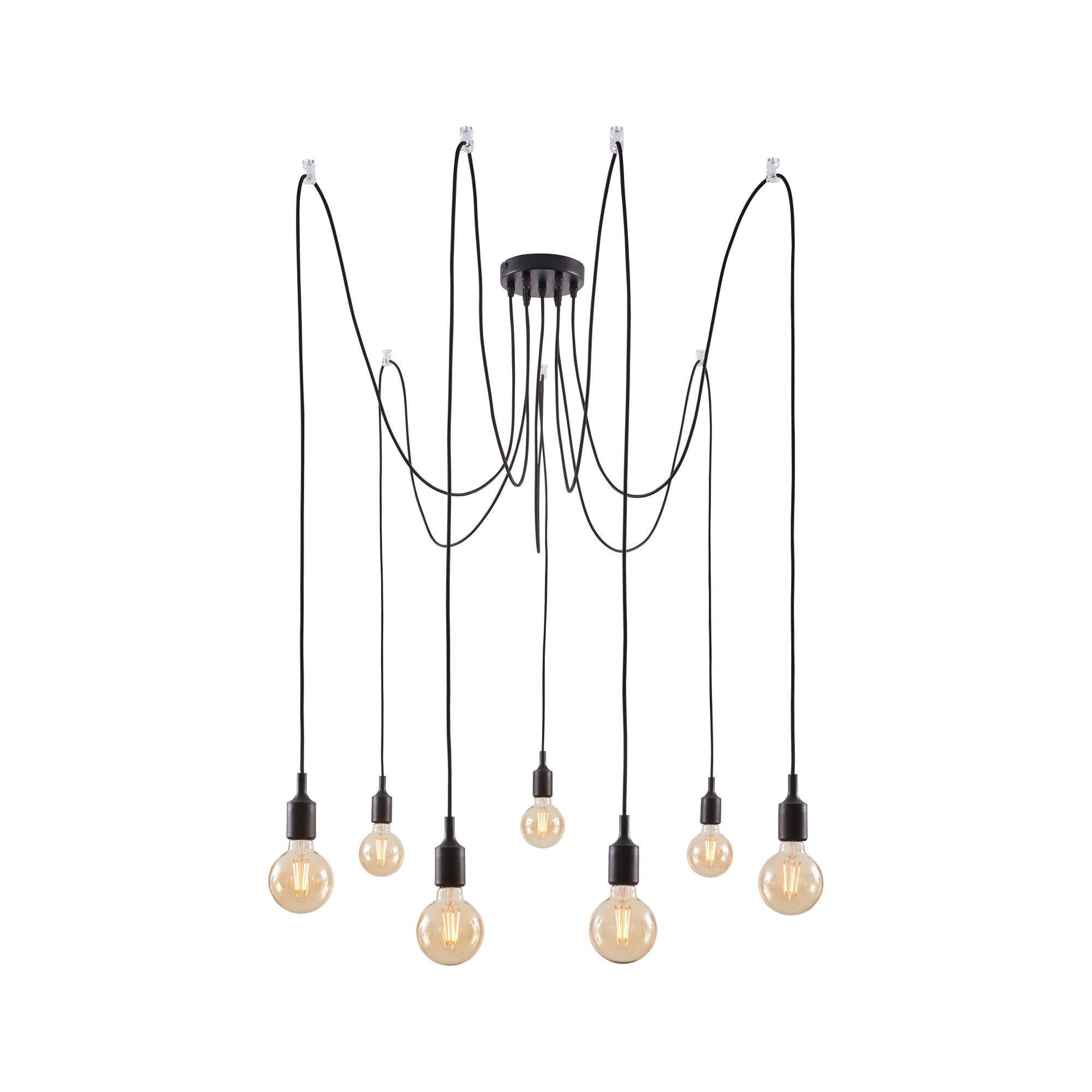 Die 7-flammige Pendelspinne Ketil macht jede Zimmerdecke zum dekorativen Hingucker. Die Leuchte wird in Einzelteilen geliefert und darf selbst zusammengebaut werden. Die Zeit für den Zusammenbau beträgt etwa 45 Minuten. Mit Hilfe der mitgelieferten Haken, lassen sich die einzelnen Stränge individuell an der Decke befestigen. In Kombination mit Kopfspiegellampen oder Filaments ergeben sich individuelle Lichtszenarien.