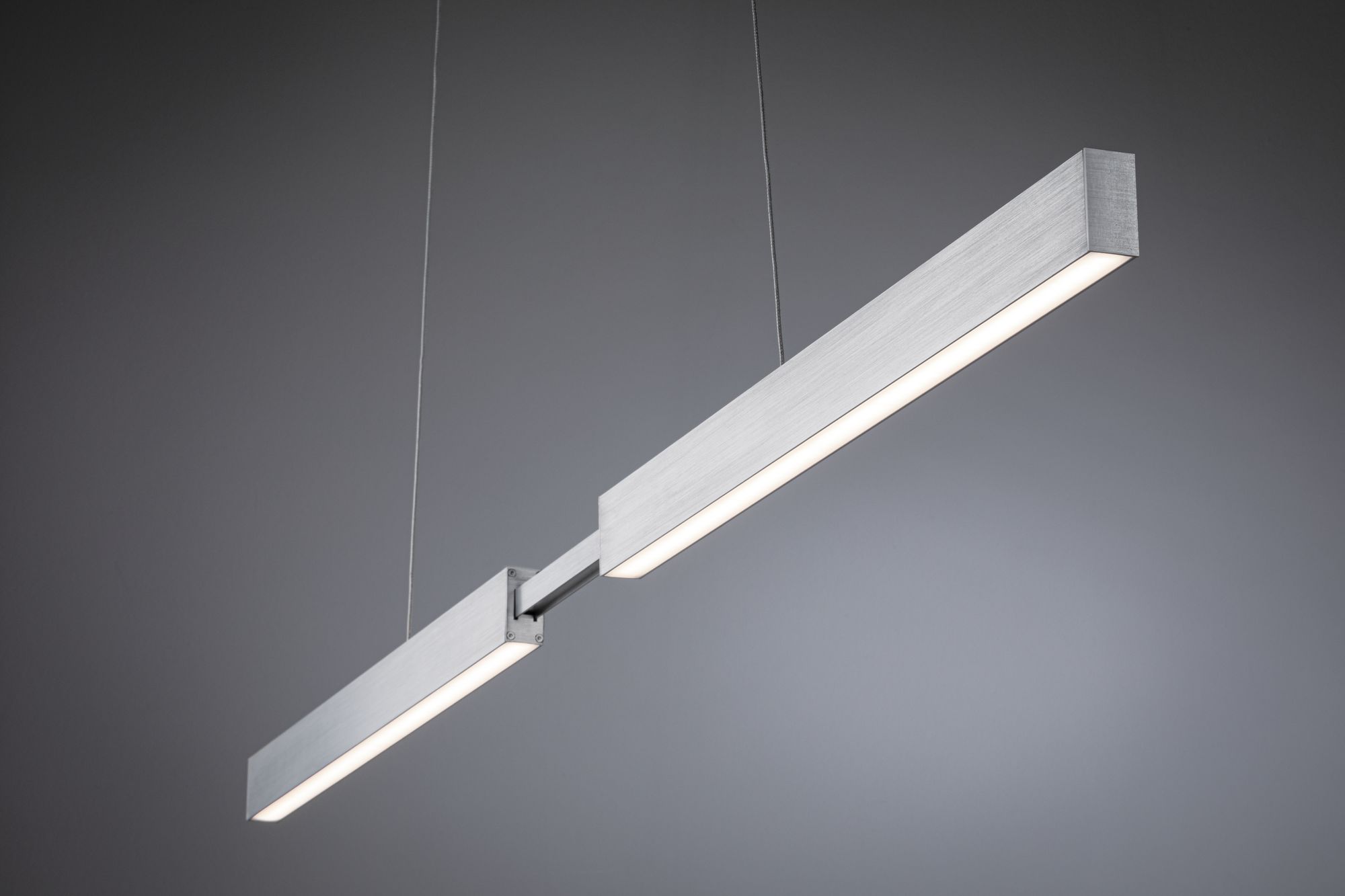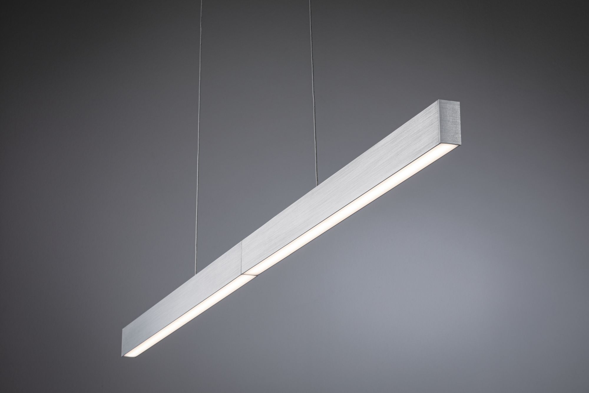 Die ausziehbare Hängelampe Aptare incl. der Fernbedienung Gent ist perfekt zur Beleuchtung ausziehbarer Tische. Sie lässt sich zwischen 90 cm bis 150 cm in der Höhe verstellen und von 132 cm auf 180 cm verlängern. Nach oben gibt sie 40% indirektes und nach unten 60% direktes Licht ab. Mit der enthaltenen Zigbee 3.0-Fernbedienung lässt sich sowohl schalten als auch dimmen.