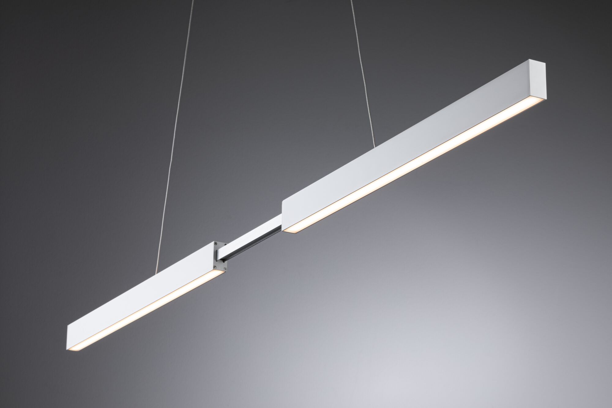 Die ausziehbare Pendelleuchte Aptare in Weiß matt incl. der Fernbedienung Gent ist perfekt zur Beleuchtung ausziehbarer Tische. Sie lässt sich zwischen 90 cm bis 150 cm in der Höhe verstellen und von 132 cm auf 180 cm verlängern.Nach oben gibt sie 40% indirektes und nach unten 60% direktes Licht ab. Mit der enthaltenen Zigbee-Fernbedienung lässt sich sowohl schalten als auch dimmen.