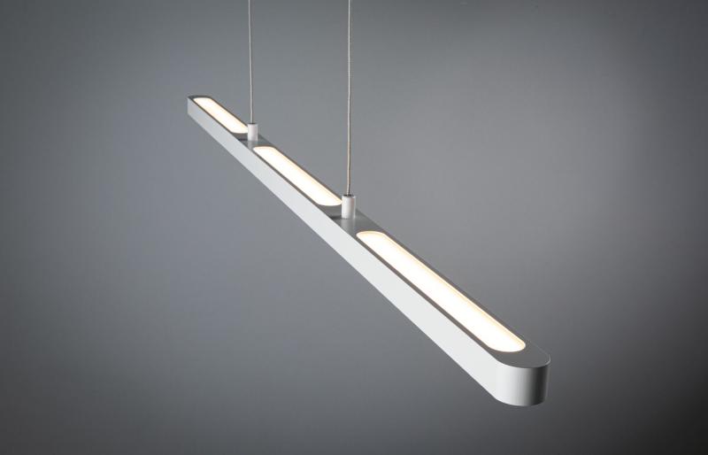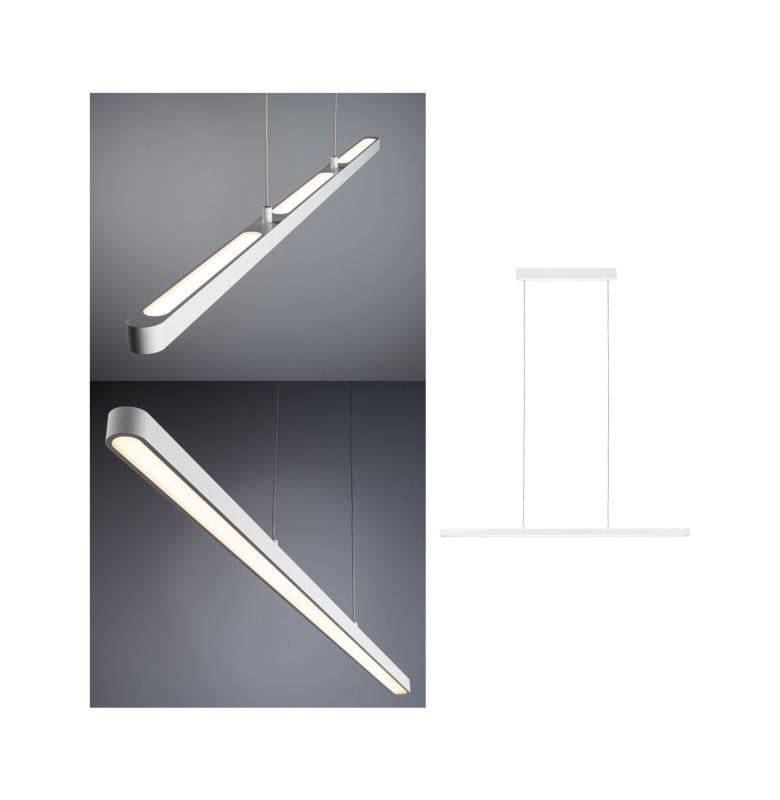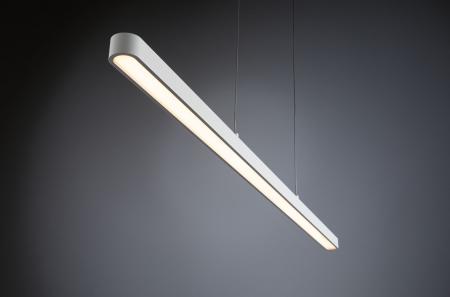 Geradlinig, modern und technisch: das ist die höhenverstellbare Pendelleuchte Lento in Weiß. Sie überzeugt durch einen hohen Lumenoutput und gibt das Licht sowohl nach oben als auch nach unten ab. Über den Wanddimmer lässt sich das Licht herunterdimmen.