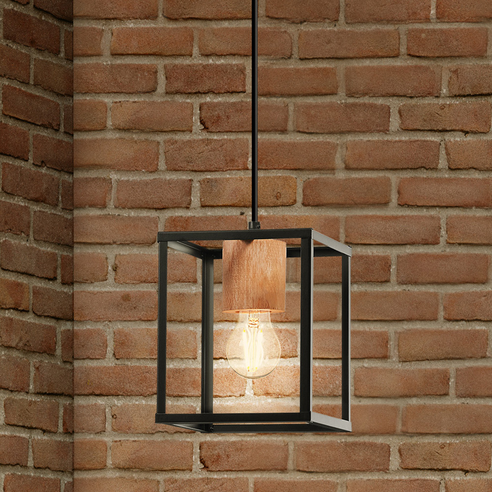 Eine moderne Leuchte im industriellen Stil, die aus Stahl und Holz gefertigt ist. Sie ist mit einer E27 Fassung ausgestattet und eignet sich optimal für die Beleuchtung des Couchtisches oder Eßtisches.