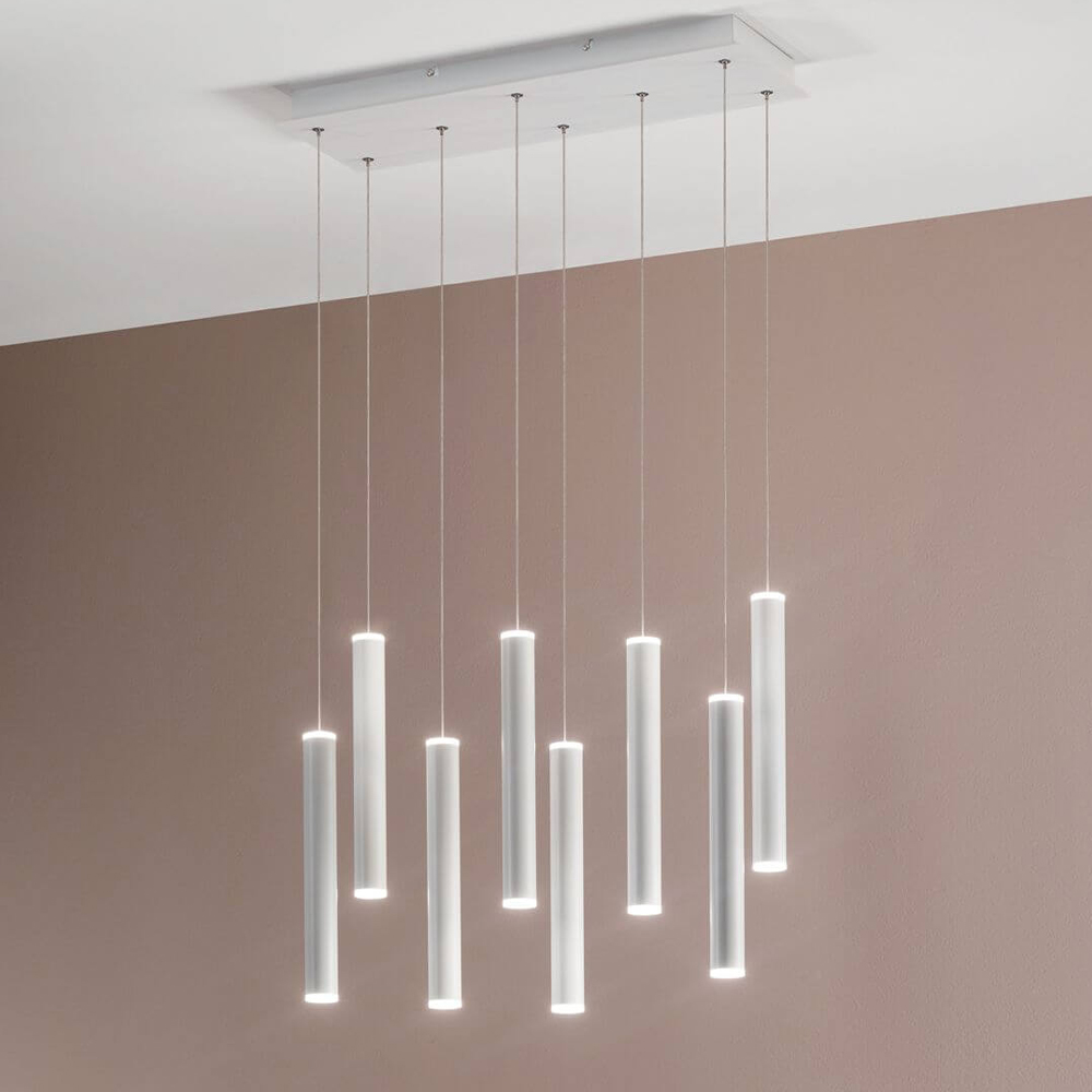 Prado ist eine Pendelleuchte mit einem eleganten, röhrenförmigen Design. Sie verfügt über ein Ober- und Unterlicht und kann bei der Installation in der Höhe verstellt werden. Der Dimmvorgang erfolgt in 3 Stufen über einen vorhandenen Wandschalter (inkl. Memory-Funktion). Sie verfügt über eine gute Farbwiedergabe und eignet sich daher perfekt für die Zonenbeleuchtung über Tischen, Theken und Arbeitsflächen.