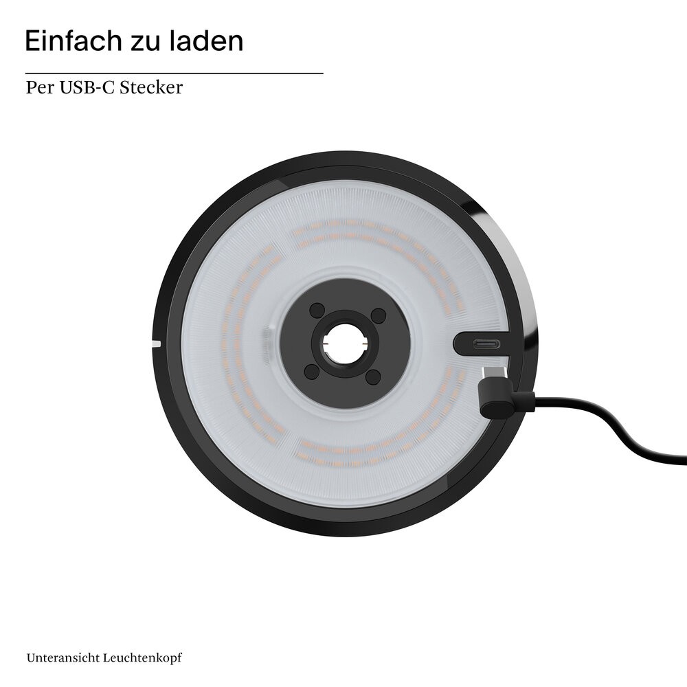 Wiederaufladbar: Mit dem beiliegenden USB-Netzteil und dem 1,2 m langen Ladekabel mit USB-C Stecker lässt sich die Akkuleuchte bequem und unkompliziert aufladen. So leuchtet sie bis zu 10 Stunden und das ganz ohne Kabel (Akku Li-Ion, 3.800 mAh).