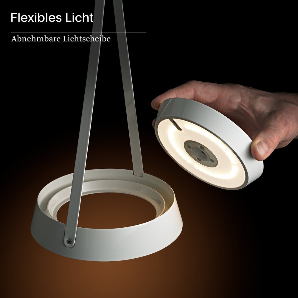 Flexibel einstellbar: Durch den schwenkbaren, abnehmbaren Leuchtenkopf kann der Lichtkegel präzise positioniert werden.