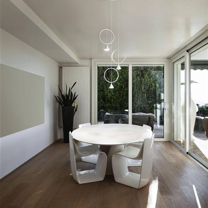 Fabas Luce Sirio ist eine stilvolle Pendelleuchte mit einem filigranen und dennoch markanten Erscheinungsbild. Sie zeichnet sich durch ein einheitliches farbliches Gesamtbild aus, das durch abgestimmte Silikonkabel entsteht.