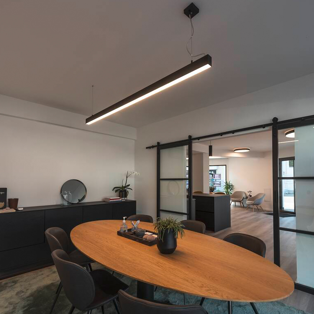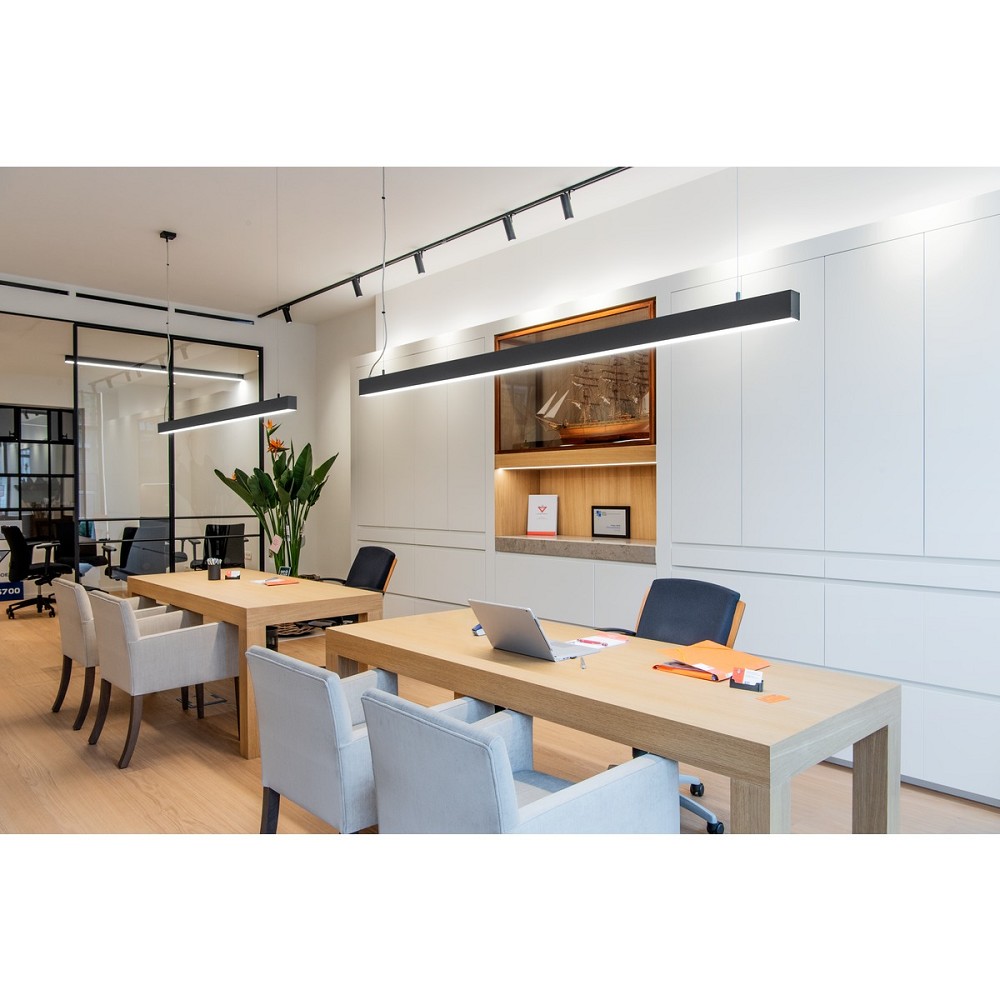 Pendelleuchte mattschwarz in 2 Meter Länge mit warmweißem LED-Licht