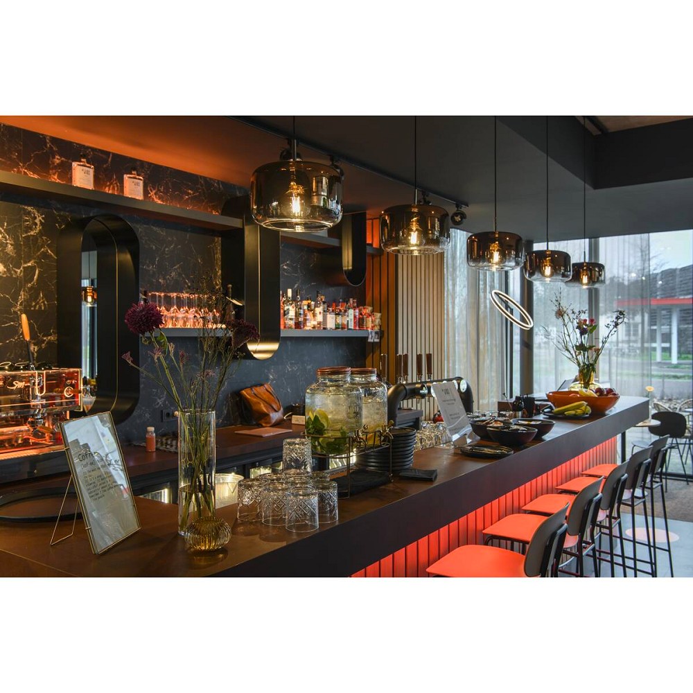 Ein tolles Zusammenspiel von Glas und Chrom sowie eine hochwertige Verarbeitung zeichnen diese Leuchte aus.
