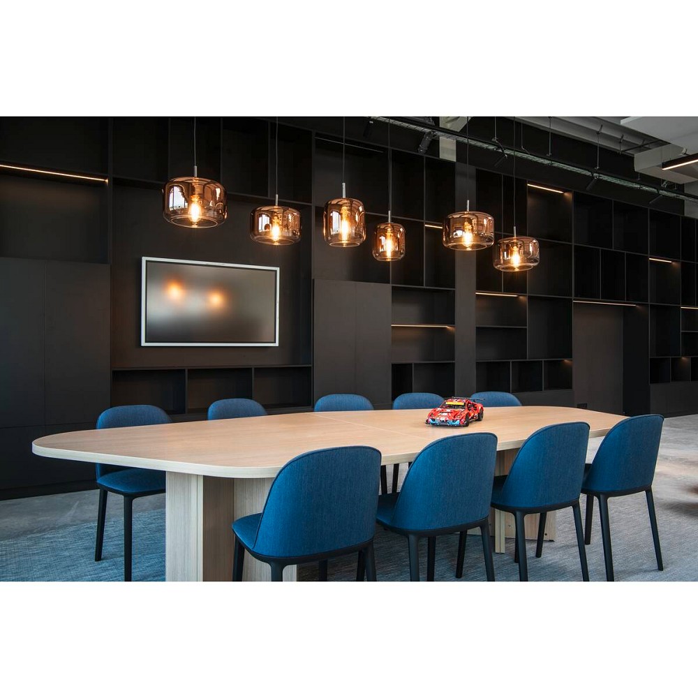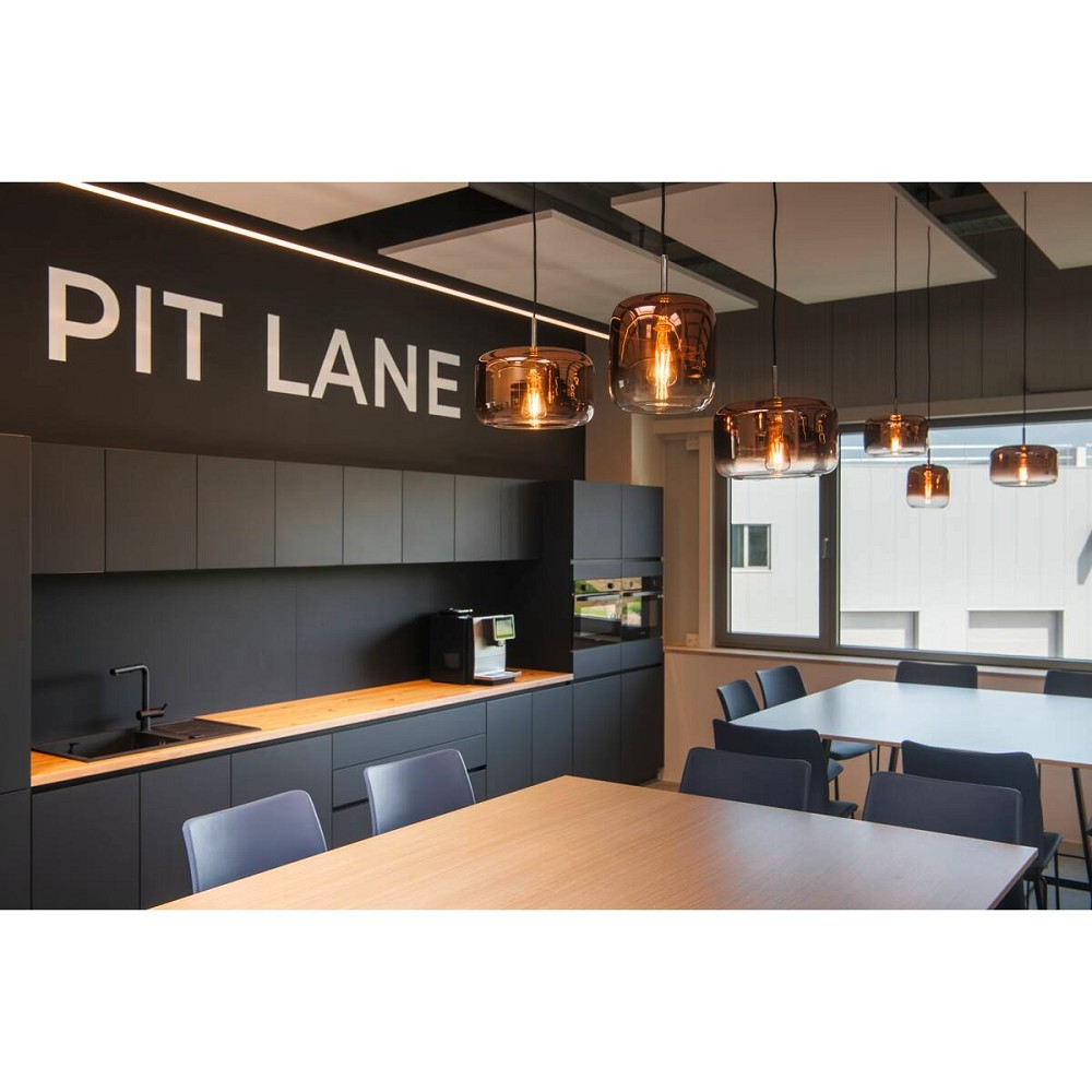 Die zylindrische Pendelleuchte PANTILO 28 hat eine maximale Pendellänge von 250 Zentimetern. PANTILO 28 hat einen zylindrischen Schirm aus verchromtem Glas der durch individuelle Zusammenstellung zur Leuchtenwolke kombinierbar ist.