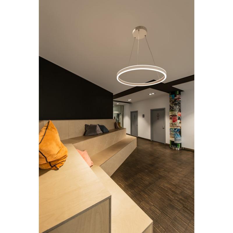 Runde Sache für repräsentative Räume: Reduziert und modern zieht die neue Pendelleuchte der ONE Familie alle Blicke auf sich. Dabei ist sie wartungsarm und mit einer zu erwartenden Lebensdauer von bis zu 30.000 Stunden nicht für die Hotellerie und Gastronomie, sondern auch für den Einsatz in stilvoll eingerichteten Shops wie gemacht. Die Lichtstimmung (3000/4000K) lässt sich via CCT-Schalter vor der Installation beeinflussen. Der Farbwiedergabeindex (CRI>90) sorgt für eine hohe Qualität der Farbwiedergabe des ringförmig nach oben wie unten abstrahlenden und DALI dimmbaren Lichts.