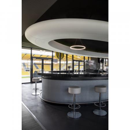 Runde Sache für repräsentative Räume: Reduziert und modern zieht die neue Pendelleuchte der ONE Familie alle Blicke auf sich. Dabei ist sie wartungsarm und mit einer zu erwartenden Lebensdauer von bis zu 30.000 Stunden nicht für die Hotellerie und Gastronomie, sondern auch für den Einsatz in stilvoll eingerichteten Shops wie gemacht. Die Lichtstimmung (3000/4000K) lässt sich via CCT-Schalter vor der Installation beeinflussen. Der Farbwiedergabeindex (CRI>90) sorgt für eine hohe Qualität der Farbwiedergabe des ringförmig nach oben wie unten abstrahlenden und DALI dimmbaren Lichts.