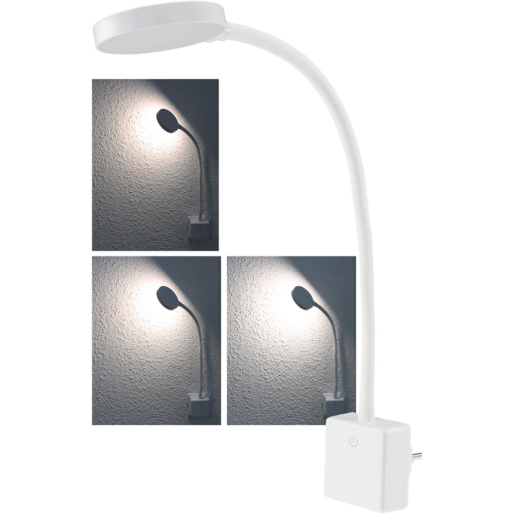 LED Leseleuchte für einfache Montage in einer Steckdose. Das eingebaute Leuchtmittel liefert ein breit abstrahlendes klares Licht. Die Steckdosenleuchte ist in 3 Stufen dimmbar (Step Dimm Funktion) und dank 36cm biegbarem Schwanenhals flexibel einsetzbar. Die dimmbare Leselampe kann einfach über den Schalter mit Dimmer am Sockel EIN und AUS geschaltet werden. Ideal als dimmbare Leselampe und Nachttischlampe am Bett oder Sofa. Geeignet als Lampe für die Arbeitsfläche in Küche, Büro oder Werkstatt. Der geringe Verbrauch von 4 Watt und die effiziente Lichtausbeute lassen einen Betrieb aus Nachtlicht zu.