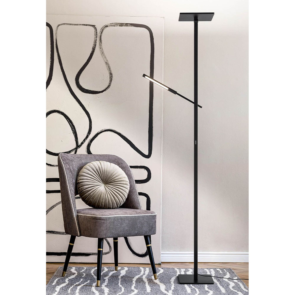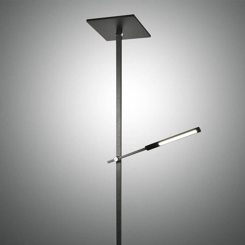 Die Leuchte kann mehr: neben dem Schreibtisch aufgestellt als Schreibtischleuchte fungieren. Das Leuchtmittel ist in der Leuchte bereits integriert. Mit dem verstellbaren Leuchtenkopf können Sie den Lichtkegel dorthin lenken, wo er gebraucht wird. Die dimmbare Leuchte strahlt ein angenehm warmweisses Licht aus.