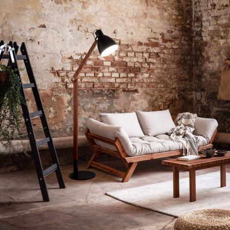 Metall meets Holz: Die Sveva Stehleuchte ist die perfekte Kombination aus zwei verschiedenen Materialien: Metallische Rustikalität und Naturmaterial vereinen sich zu einem einzigartigen Möbelstück, das warm und einladend wirkt und gleichzeitig Raffinesse ausstrahlt.
