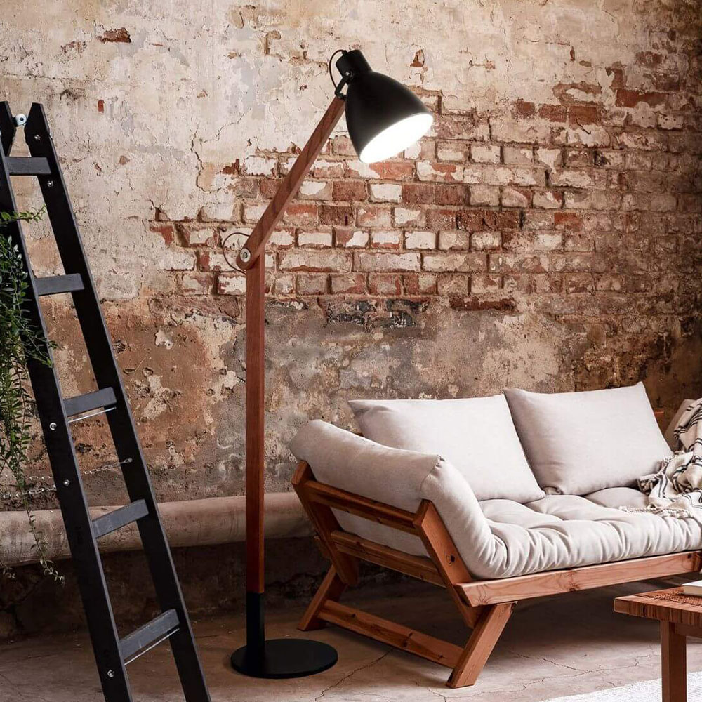 Pfiffige Echtholz-Stehleuchte im Industrie-Stil