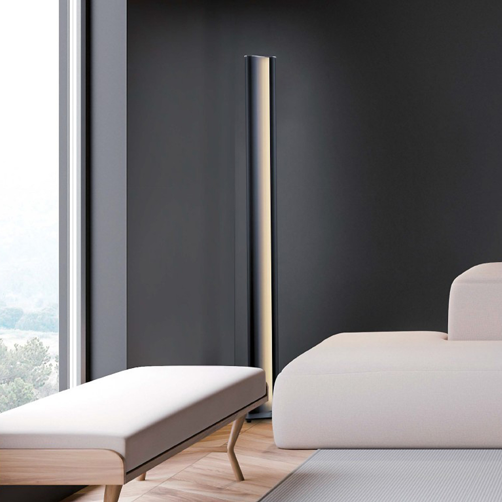 Die KURVO Stehlampe zeichnet sich durch ihr dezentes und geradliniges Design aus und vermag durch Ihre starke Lichtleistung zu überzeugen. Die Lichtsäule verfügt über einen seitlichen satinierten Acryldiffusor, welcher das warme dimmbare Licht weich und ungestreut in den Wohnraum abgibt. Mit der KURVO können Sie ein tolles Licht in Ihrem Wohnbereich erzielen, insbesondere gezielt partielle Wohnbereiche hell oder gedämpft ausleuchten. Der warmweiße Lichtfarbton sorgt für ein gemütliches Ambientein Ihrem Wohnzimmer und passt am Besten zum einem puristischen Möbel-Gesamtensemble.