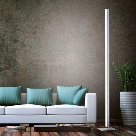 Die VENTA Stehlampe zeichnet sich durch ihr dezentes und geradliniges Design aus. Die Lichtsäule verfügt über einen seitlichen satinierten Acryldiffusor, welcher das warme dimmbare Licht weich in den Wohnraum abgibt. Mit der VENTA können Sie ein tolles Licht in Ihrem Wohnbereich erzielen, insbesondere gezielt partielle Wohnbereiche hell oder gedämpft ausleuchten. Der warmweiße Lichtfarbton sorgt für ein gemütliches Ambiente. Der Lichtschalter befindet sich oben an der Säule.
