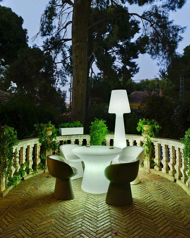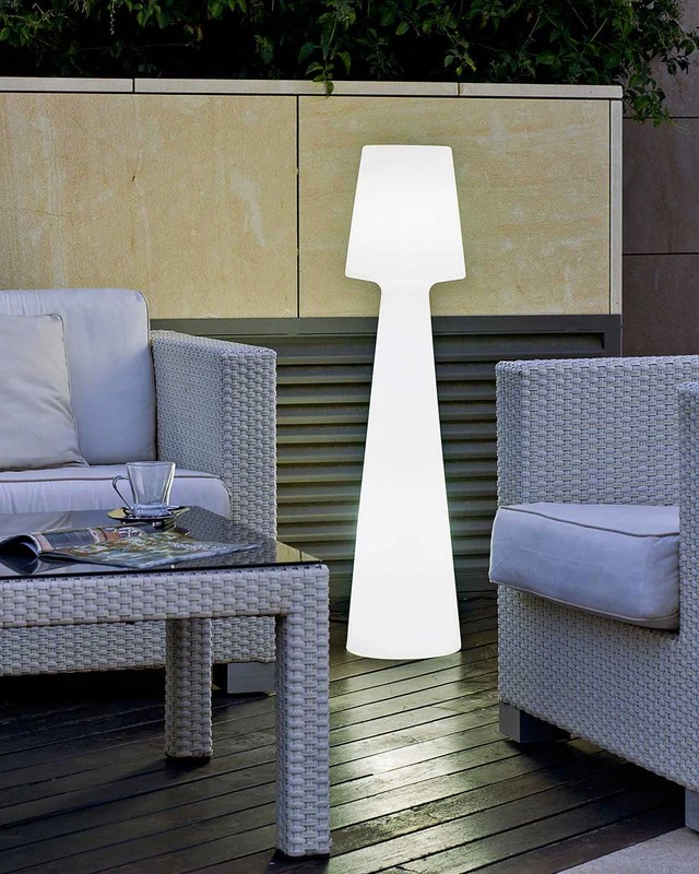 Die Stehlampe LOLA 110 (ø26,5 x 110 cm) ist eine Ikone der NEWGARDEN-Produktlinie. Mit ihrer außergewöhnlichen Formgebung und dem minimalistischen Design ist sie europaweit beliebt und eine begehrte Außenleuchte für laue Sommerabende im Garten oder der Terrasse. Die Leuchte wird mit einem Kabel und Stecker an 230 Volt angeschlossen und strahlt ein kaltweisses Licht aus. Die formschöne Outdoorleuchte LOLA ist in verschiedenen Größen und Ausführungen erhältlich und kann optional auch für festliche Anlässe im Innenbereich, beispielweise als Blickfang und dezente Beleuchtung in einer Empfangshalle, hervorragend positioniert werden. Die Leuchte wurde aus Polyethylen gefertigt, wodurch sie äußerst widerstandsfähig gegen extreme Temperaturschwankungen ist. Sie ist zudem vor UV-Strahlen geschützt, wodurch eine hohe Lebensdauer des Produkts zu erwarten ist. Diese Leuchte kann aufgrund des IP65-Schutzes im Außen- und Innenbereich verwednet werden.
