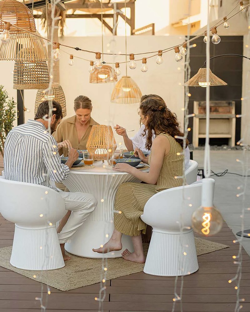 Niza ist eine Stehleuchte, die ohne Kabel auskommt. Niza ist eine Stehleuchte, die ohne Kabel auskommt. Ihr schwarz lackierter Metallkörper erreicht eine maximale Höhe von 165 cm und ist damit die ideale Bogen-Stehleuchte für jeden Gartenbereich. Sein Schirm ist mit Naturfasern handgeflochten und hat einen Durchmesser von 72 cm.