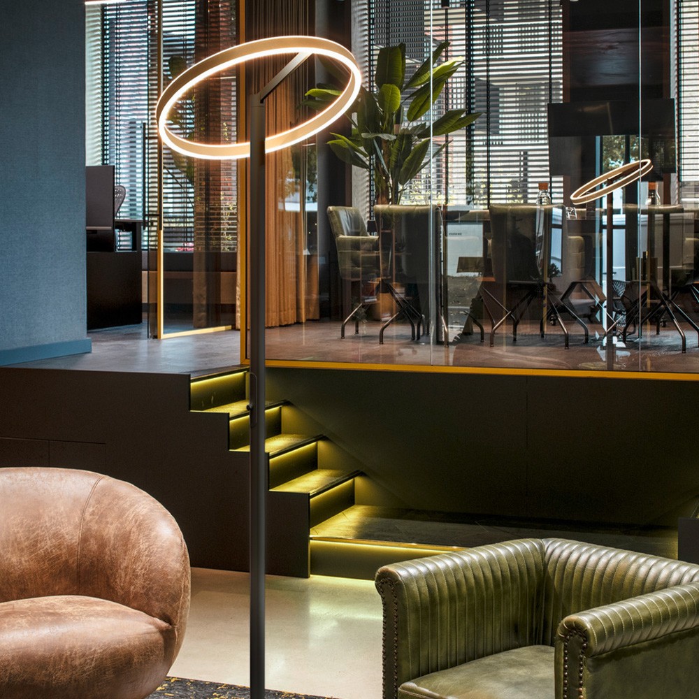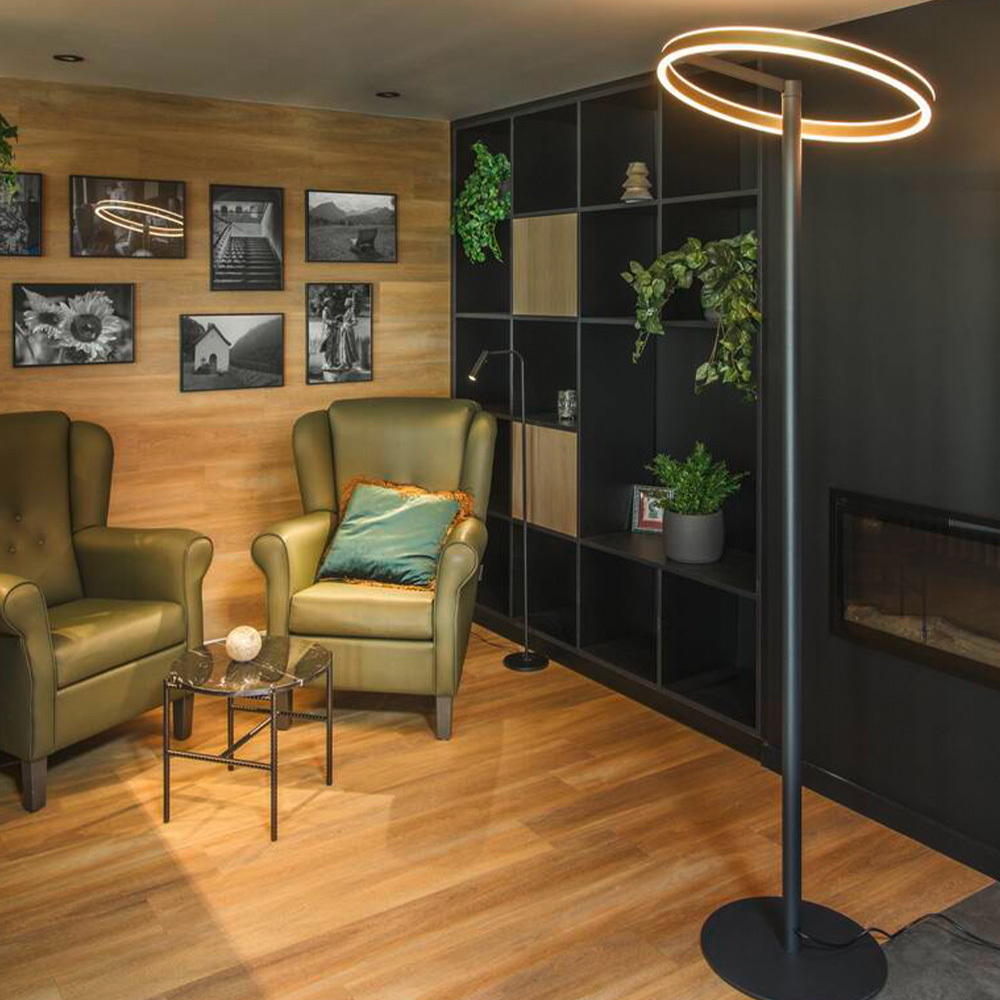 Ideal für elegante Wohnräume, die Hotellerie, Gastronomie und kleinere Shops: Mit ihrem rundum gelungenen Design zieht die ONE STRAIGHT FL Stehleuchte alle Blicke auf sich. Der kreisrunde Leuchtenkopf strahlt sein 1200 / 1200 Lumen starkes und dimmbares Licht nach oben und unten ab. Via CCT-Switch ist die Farbtemperatur flexibel einstellbar (2700/3000K). Durch den CRI über 90 werden Farben natürlich dargestellt, während der Abstrahlwinkel von 140 Grad die Umgebung gleichmäßig erhellt. Dazu ist die LED der ONE STRAIGHT FL mit 50000 Stunden auch noch äußerst langlebig.