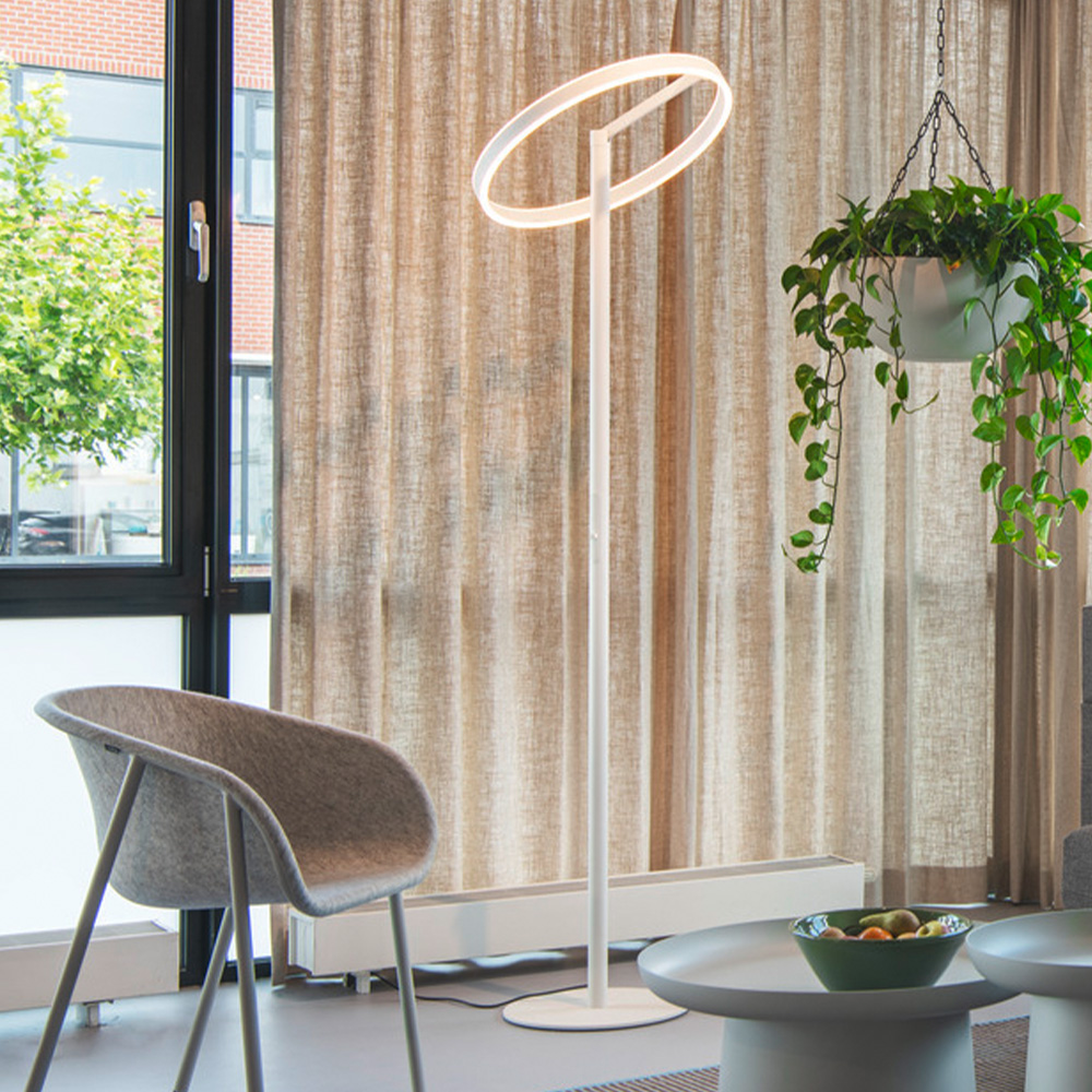 Ideal für kompaktere Shops, die Hotellerie, Gastronomie und kleinere Shops: Die ONE STRAIGHT FL Stehleuchte setzt in jedem Raum ein rundum gelungenes Designstatement. Dabei strahlt der kreisrunde Leuchtenkopf sein in der Farbtemperatur einstellbares (2700/3000K), 1200 / 1200 Lumen helles und dimmbares Licht nach unten und oben ab. Durch den CRI über 90 werden Farben natürlich dargestellt, während der Abstrahlwinkel von 140 Grad die Umgebung gleichmäßig erhellt. Dazu ist die LED der ONE STRAIGT FL mit 50000 Stunden auch noch äußerst langlebig.