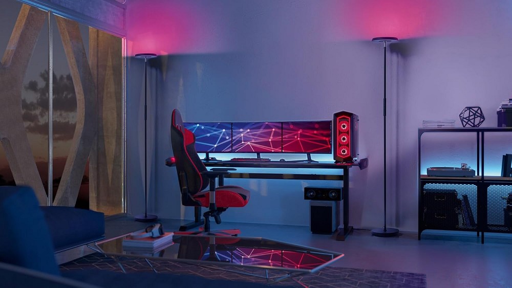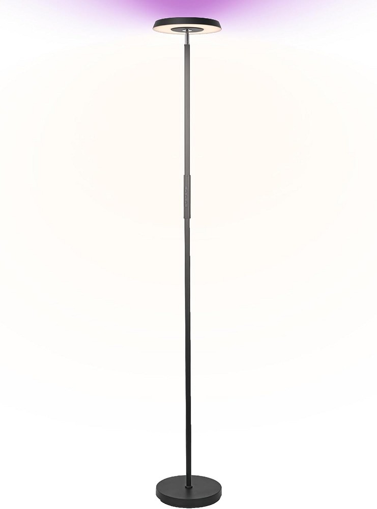 Die SMART+ LED-Stehleuchte bietet eine moderne Gestaltung mit oben und unten strahlendem Licht, ideal für die klassische Lesebeleuchtung im Wohnzimmer oder für ein stimmungsvolles Ambiente in Home-Entertainment-Anwendungen.